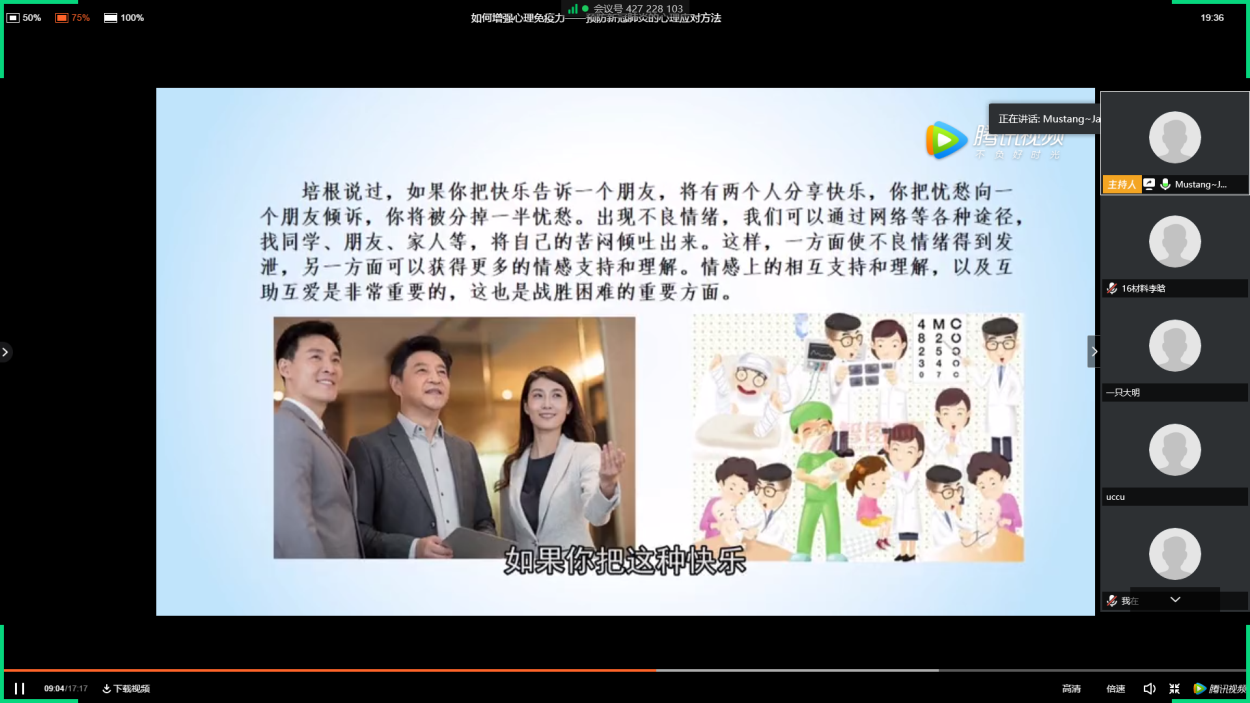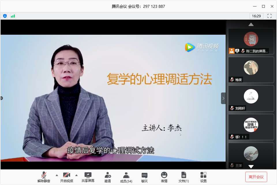 面对近期新型冠状病毒肺炎疫情,为帮助学生尽快减轻疫情所带来的心理压力,积极引导学生学习心理健康知识,以良好心态打好防疫攻坚战,近日,物理与电子信息学院积极落实学校工作部署。6月4日至6月7日在辅导员与班委的积极组织下,各班依托腾讯会议、企业微信等平台,以班级为单位,观看了“大学生心理健康大课堂”。本次我院观看人数有1028人。