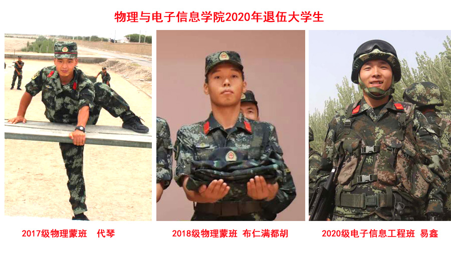 易鑫、布仁满都胡、代琴都是今年退役的大学生,在今年内蒙古师范大学新生军训里,他们担任了一团四营物理与电子信息学院的新生军训助理指导员,除了协助指导内务统一、队列训练外,他们在2020级新生中还讲着携笔从戎、练兵备战、维稳保卫、民族团结等“当兵”的故事。他们希望能把在部队里练就的本领传给学弟学妹们,将家国情怀传递出去,系好扣子、正步向前,通过军训锤炼意志。