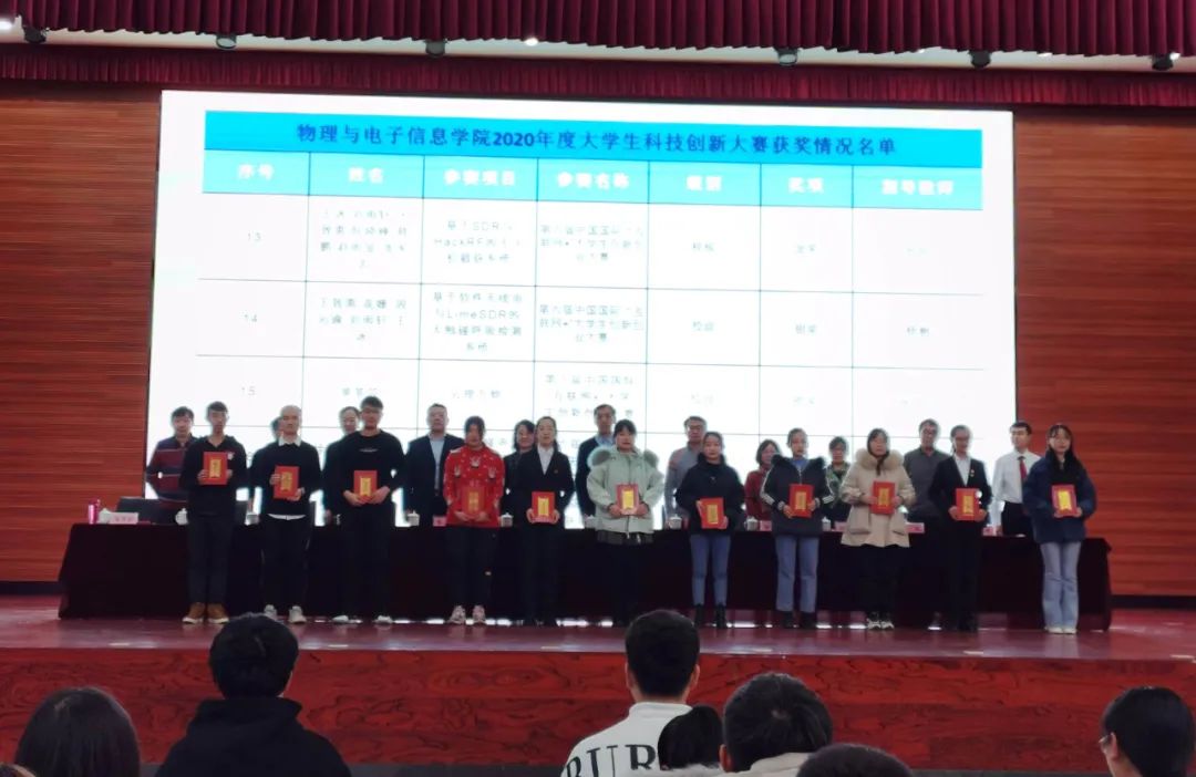 第三项,学院领导为获得2020年度创新创业先进个人以及创新创业优秀指导教师颁奖。我院2017级物理蒙班何良、2017级物理汉班张晓宇、2017级工程班潘旭东、2018级物理汉班钱莫闲、2018级材料班田璐、2019级物理汉1班樊璐玮等23名同学获得学院2020年度创新创业先进个人奖。我院教师曹永军、张伟、那日苏、赵凤岐、田晓、孙咏萍、乌仁图雅、朝克夫、张天臣、杨帆、李喜彬等获2020年度创新创业优秀指导教师奖。