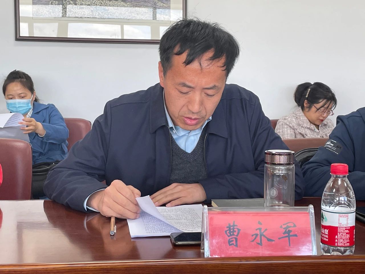伴随着《义勇军进行曲》会议正式开始,首先由副院长曹永军作《物理与电子信息学院工作报告》。《报告》共分三部分,第一部分是对2020年以来学院工作的简要回顾,第二部分是对“十四五”期间学院发展面临的新形势新任务的重点解读,第三部分是对2021年重点工作任务的安排部署。