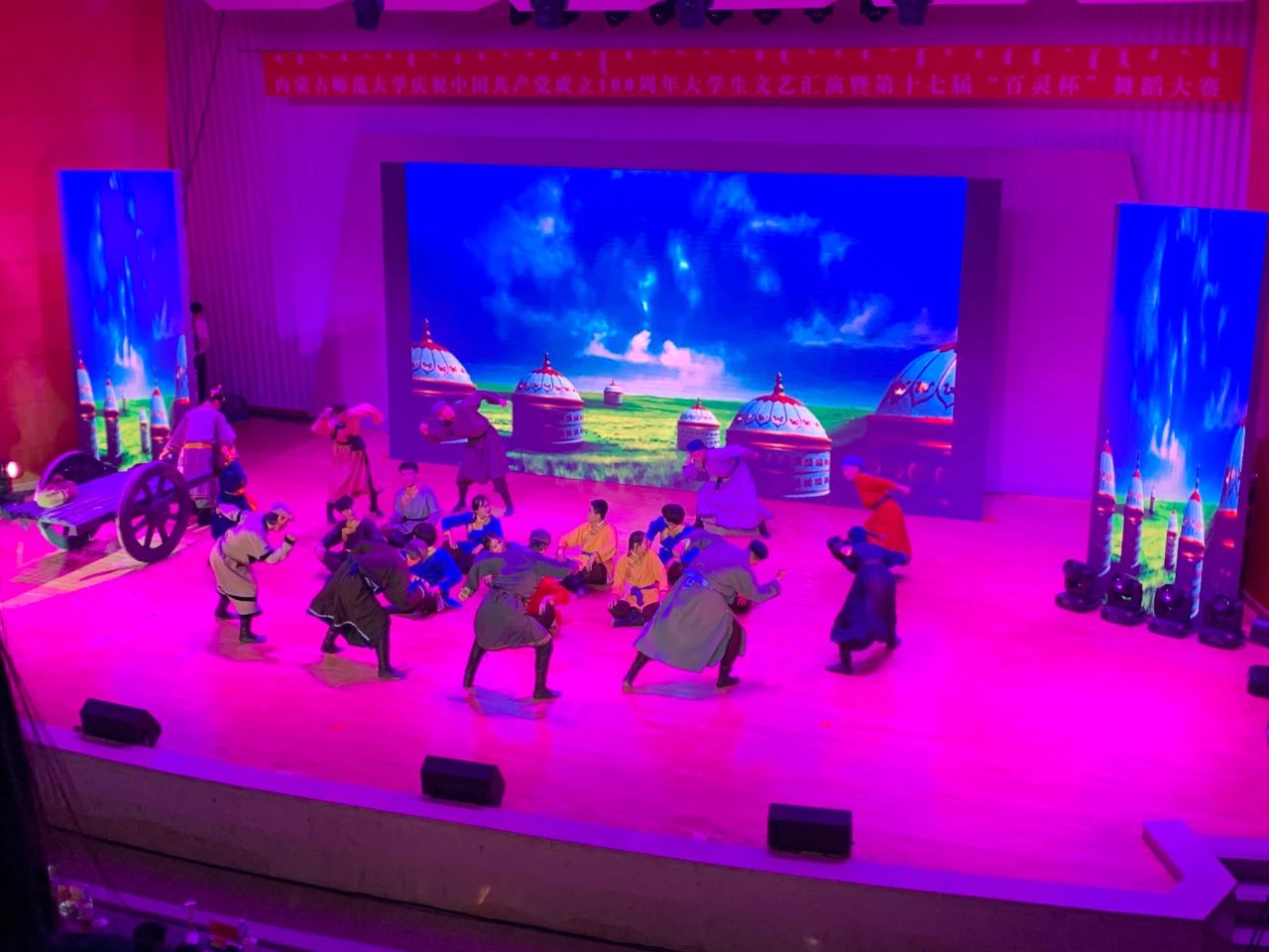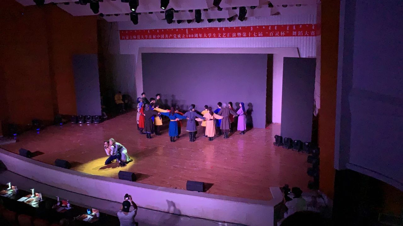2021年5月18日,内蒙古师范大学庆祝中国共产党成立100周年大学生文艺汇演暨第十七届“百灵杯”舞蹈大赛在盛乐校区音乐厅隆重举行。各学院代表队纷纷以良好的精神面貌展示出精心准备的舞蹈作品,为全校师生带来了一场别开生面的舞蹈表演,献上了对中国共产党百岁诞辰的祝福。我院参赛作品《国家的孩子》在参赛同学与指导老师的团结协作下,克服了重重困难,凭借精湛深情的演绎获得了评委与在场观众的一致认可,荣获二等奖。