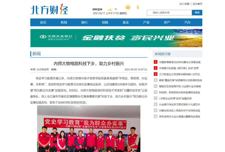 党史学习教育开展以来,内师大物理与电子信息学院党委紧紧围绕“学党史、悟思想、办实事、开新局”,坚持把党史学习教育与为民办实事结合起来,以庆祝建党100周年为契机,积极开展“我为群众办实事”实践活动。6月8日,内师大物电院组织科技技术专家和“北疆科技支农”公益服务队,深入乌兰察布市察右后旗锡勒乡红旗庙嘎查开展“科技下乡,助力乡村振兴”我为群众办实事实践活动,受到了当地村民们的热烈欢迎。