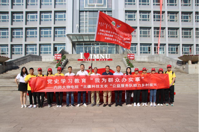 我院院党委副书记兼副院长张伟、“三下乡”指导教师克伦、团总支副书记宝力尔、学就办副主任王乐、辅导员宋鑫伟老师以及我院暑期“三下乡”志愿服务者共14人参加出征仪式。仪式后,校领导以及校团委领导老师与我院“三下乡”师生合影留念。本次“三下乡”为期十天,将赴包头市石拐区农村进行农机、家电义务维修,普及宣传用电知识。