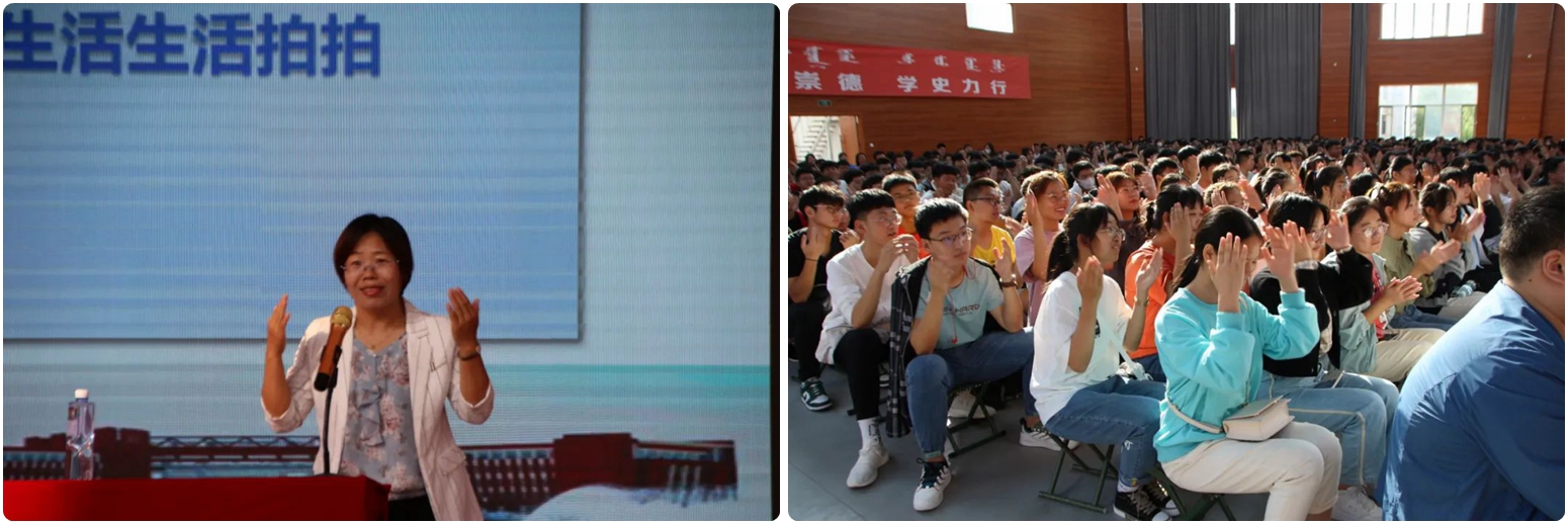 讲座中,内蒙古师范大学学生工作处心理健康教育中心的李翠云老师主讲了主题为《只为途中与你相约——一切清零,来到大学》的大学生心理健康教育讲座,针对“大学生心态、抑郁症、心理求助”三个问题深入浅出地为同学们解惑。紧接着,校保卫处安全健康教育网的赵建国老师就疫情、实验室、踩踏、毒品、火灾等与大学生息息相关的安全问题进行了详细讲解,引导同学们反思了生活中的高风险行为。