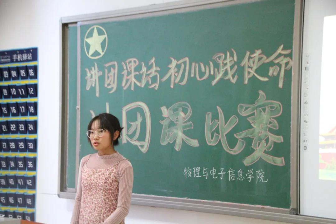 为深入学习贯彻习近平新时代中国特色社会主义思想和习近平总书记关于青年工作的重要论述,认真贯彻团的十八大精神,进一步落实《内蒙古师范大学共青团改革实施方案》,深化《内蒙古师范大学学校共青团组织力提升三年行动方案》,深入开展“青年大学习”行动中“导学、讲学、研学、比学、践学、督学”之学习体系内容,进一步增强我校基层团支部书记讲团课的能力,创新团课教学形式,丰富团课教学内容,增强团员先进性,10月21日下午,我院在理工楼开展“基层团支部书记讲团课”比赛活动。