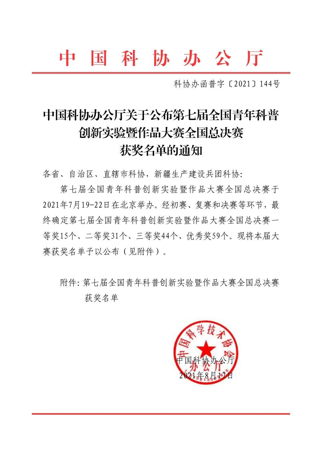 8月17日,中国科协办公厅公布第七届全国青年科普创新实验暨作品大赛全国总决赛获奖名单,最终确定第七届全国青年科普创新实验暨作品大赛全国总决赛一等奖15个、二等奖31个、三等奖44个、优秀奖59个。其中我院王祥、杨霆赫同学参赛的“基于外骨骼的可协调智能机械手”项目荣获二等奖,项目由杨帆、杨冬梅老师指导。