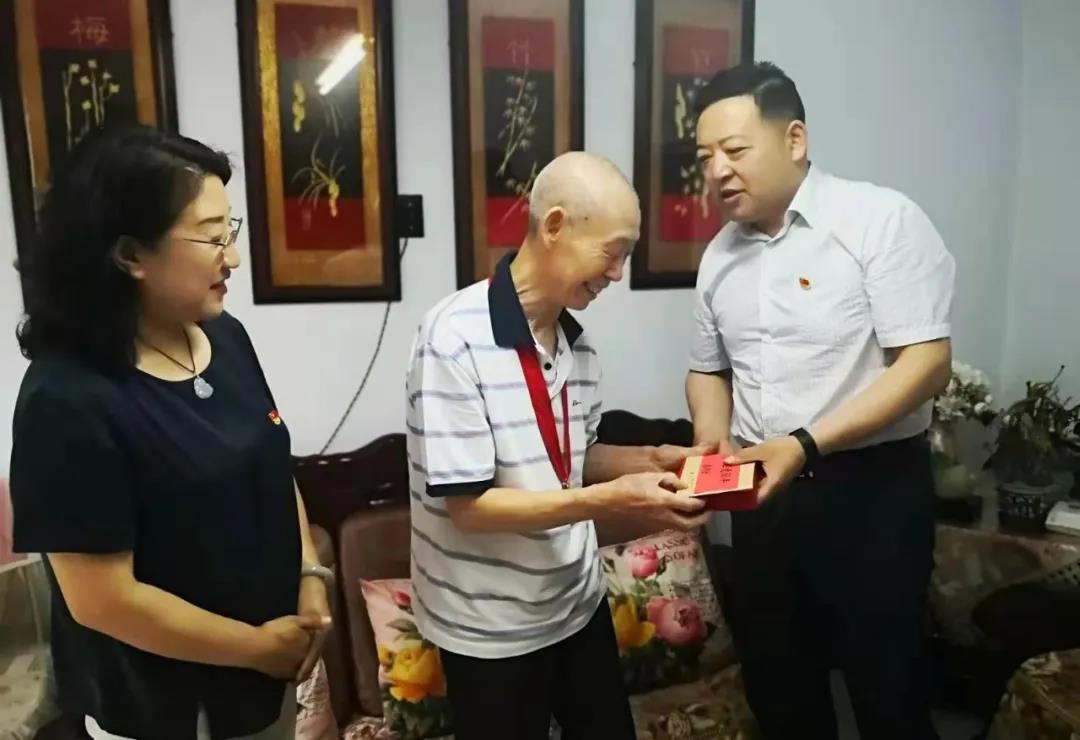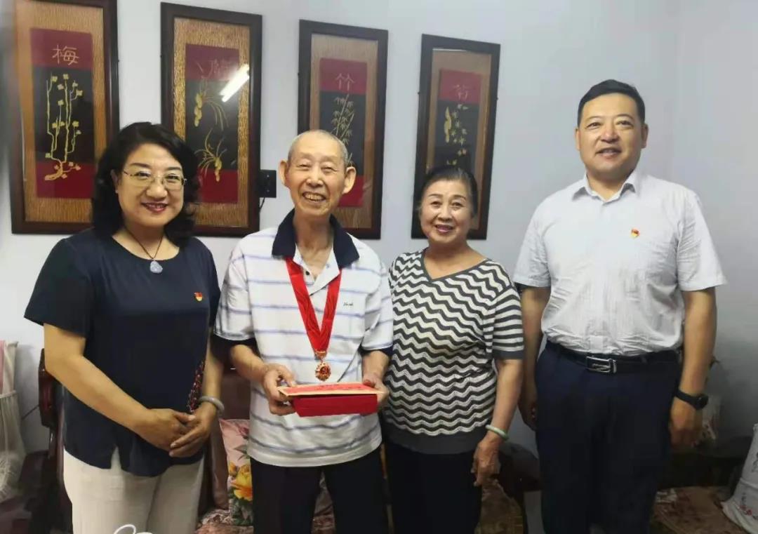在喜迎中国共产党百年华诞之际,中共中央首次颁发“光荣在党50年”纪念章。6月25日,物理与电子信息学院党委书记刘美玲,党委副书记兼副院长张伟等院领导,走进我院“光荣在党50年”老党员家中,亲切慰问了韩正月、蒙文林等老同志,送去组织的关怀。