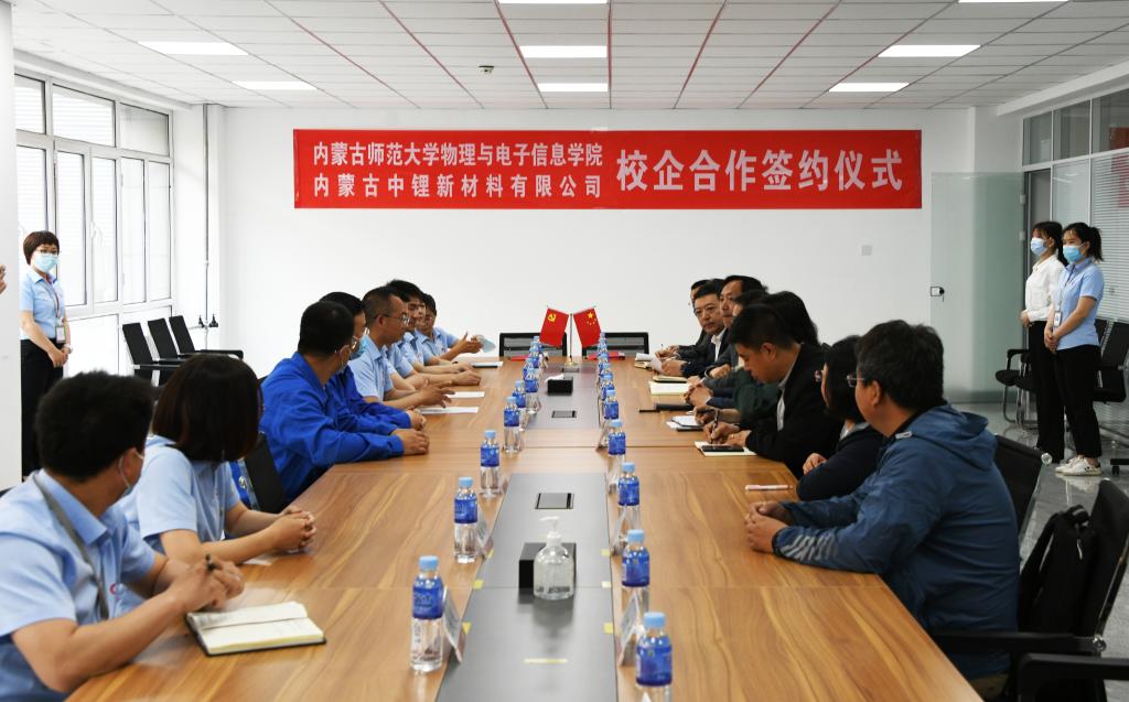 为贯彻落实中央、教育部、自治区关于高校毕业生就业创业工作安排部署和《内蒙古师范大学书记校长访企拓岗促就业专项行动实施方案》相关要求,5月31日上午,学校党委委员副校长宫箭率队,在招生就业处副处长战文彬,物理与电子信息学院党委书记刘美玲、院长曹永军、副书记兼副院长张伟等同志陪同下,赴内蒙古中锂新材料有限公司开展“访企拓岗”专项行动,与中锂新材公司负责人李月红、党支部书记樊志新及相关负责人进行座谈和交流,签订校企产学研合作协议,并为产学研合作基地揭牌。物理与电子信息学院综合办、材料系、学就办负责人,自治区稀土功能与新能源储能材料工程研究中心负责人等参加活动。
