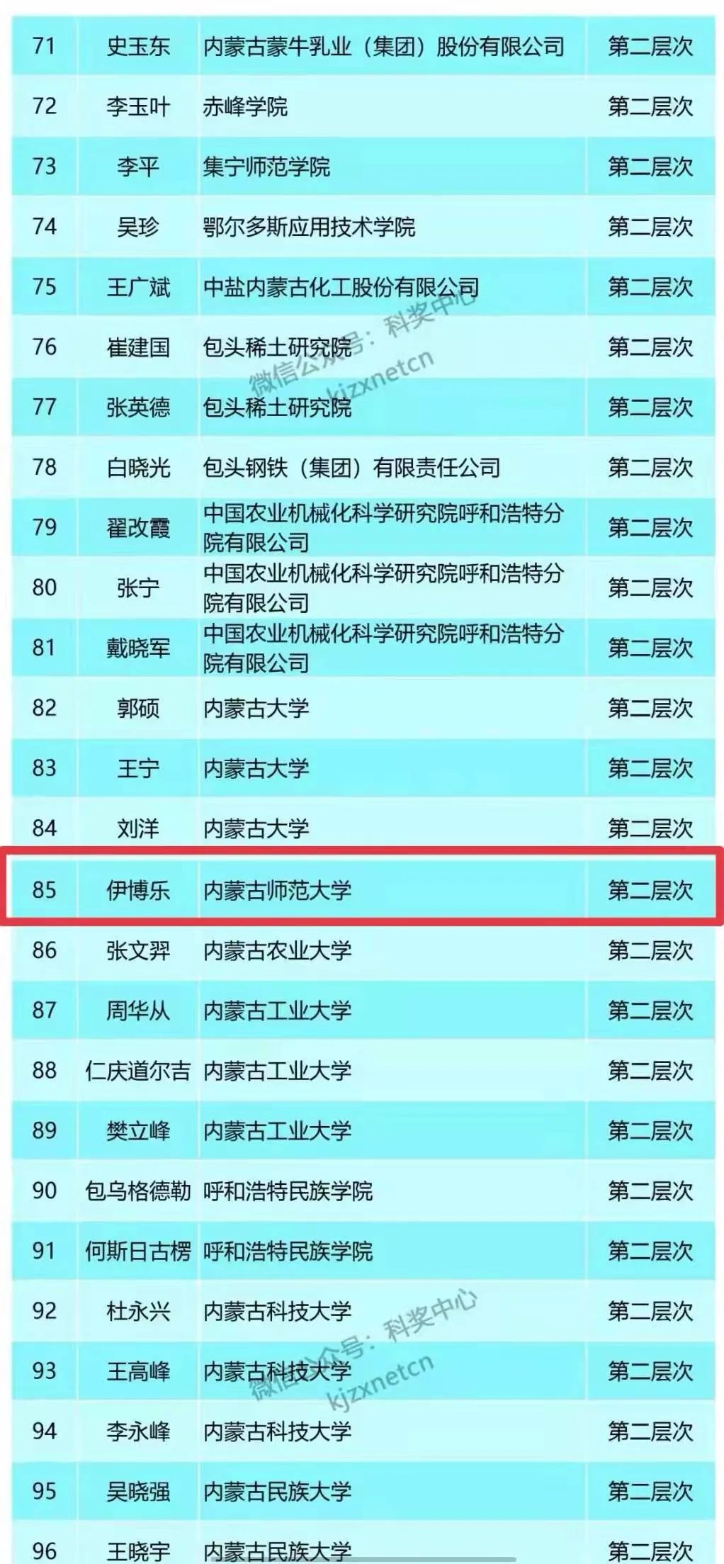 按照《关于开展2021年自治区新世纪321人才工程第一、二层次人选考核选拔工作的通知》(内人社办发〔2021〕217号)有关要求,经各地区各部门申报推荐,自治区人力资源和社会保障厅组织专家评选,自治区新世纪321人才工程领导小组成员单位会议审议,我院杨艳春、伊博乐两位老师入选2021年度自治区新世纪321人才工程第二层次人才。