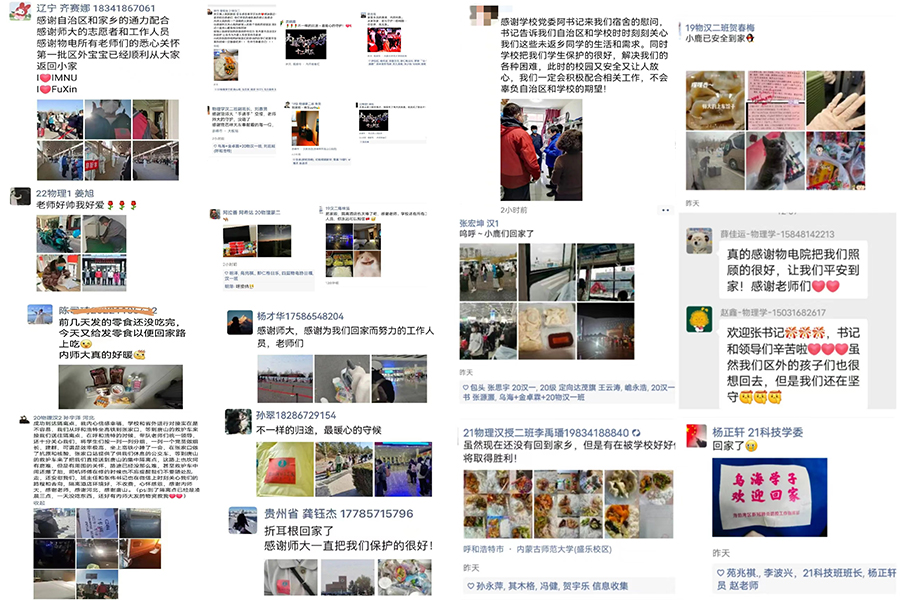上下同欲者胜,风雨同舟者兴。面对疫情“大考”,全校上下同心,团结一致,共同筑牢校园疫情防控“安全线”。鉴于疫情防控形势的严峻性和复杂性,自治区党委、政府坚审时度势果断做出驻呼高校学生有序分流返乡的安排。区内各盟市、区外省政府也纷纷响应,点对点转运、手递手交接,以迅速、温暖、有力的行动演绎着“守望相助”的团结合作精神,彰显了坚不可摧、大气磅礴的中国力量。