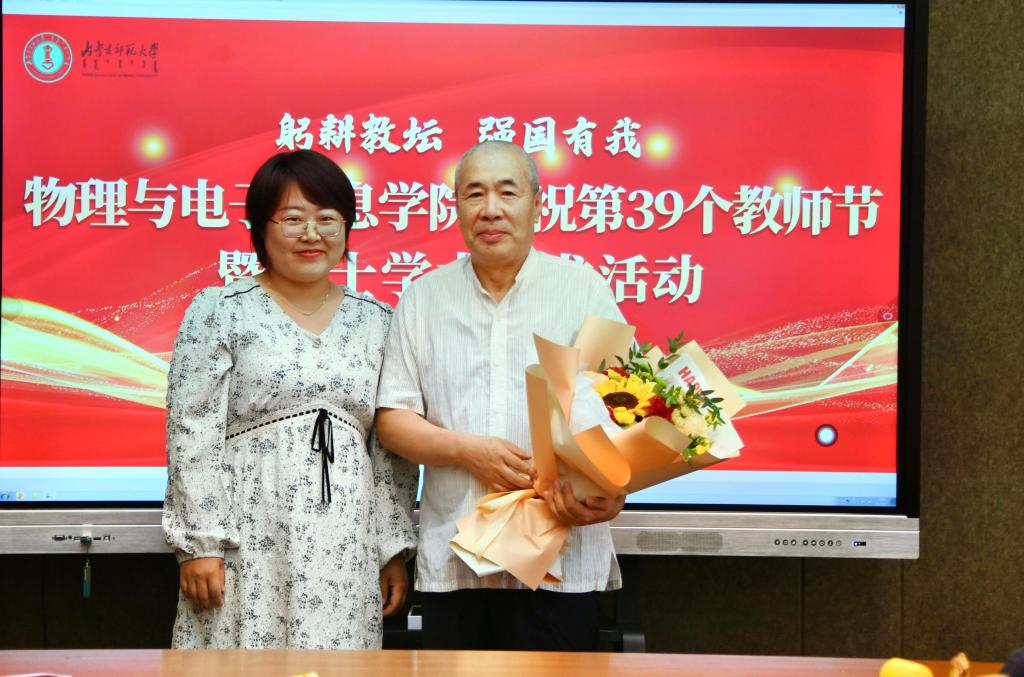 会上,我院新入职教师为在学院改革、建设与发展中,做出突出贡献的老领导云国宏、特古斯、刘美玲献花,感谢各位领导老师心怀“国之大者”,为我院建设发展做出的突出贡献,祝福老师们生活快乐,幸福,身体健康!教师节快乐!