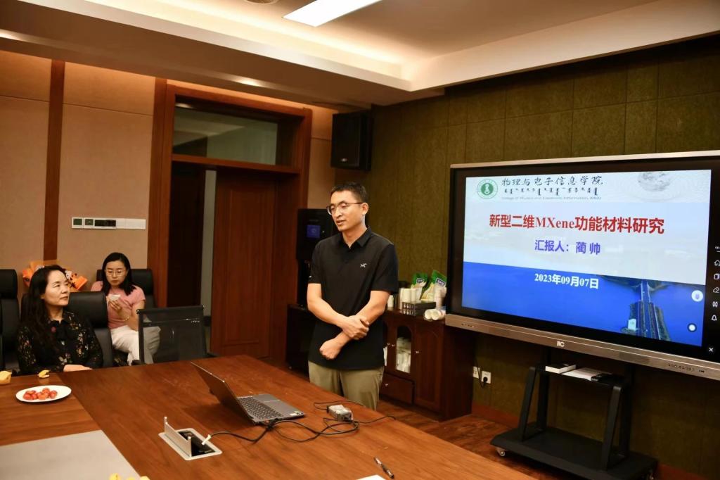 活动第二阶段由我院四位博士蔺帅、李卫、杨艳春、吕晓东做学术报告,并与在座师生进行了互动交流。学术报告主题分别为:《新型二维MXene功能材料研究》;《电池材料研究及储能技术开发》;《铜锌锡硫硒和铜钒硫硒薄膜太阳能电池的制备及优化》;《新型二维材料的理论设计及其物性调控》。四位新老博士各展其才,围绕各自研究领域,展示出最新研究成果以及未来研究方向。学术沙龙活动不仅加强了院内学术交流,凝练了研究方向,整合了学术团队,也助推了一流学科建设研,助力学院科研工作再上新台阶。与会教师针对物理学一级学科博士点建设进行了研讨。最后,云国宏教授讲话,对学院近年来取得的发展成就给予高度评价,并对学院高水平师资队伍建设,优势项目培育,博士点学科建设,科研平台建设以及产出高水平成果等方面如何更好发展提出了建议。
