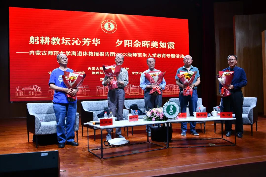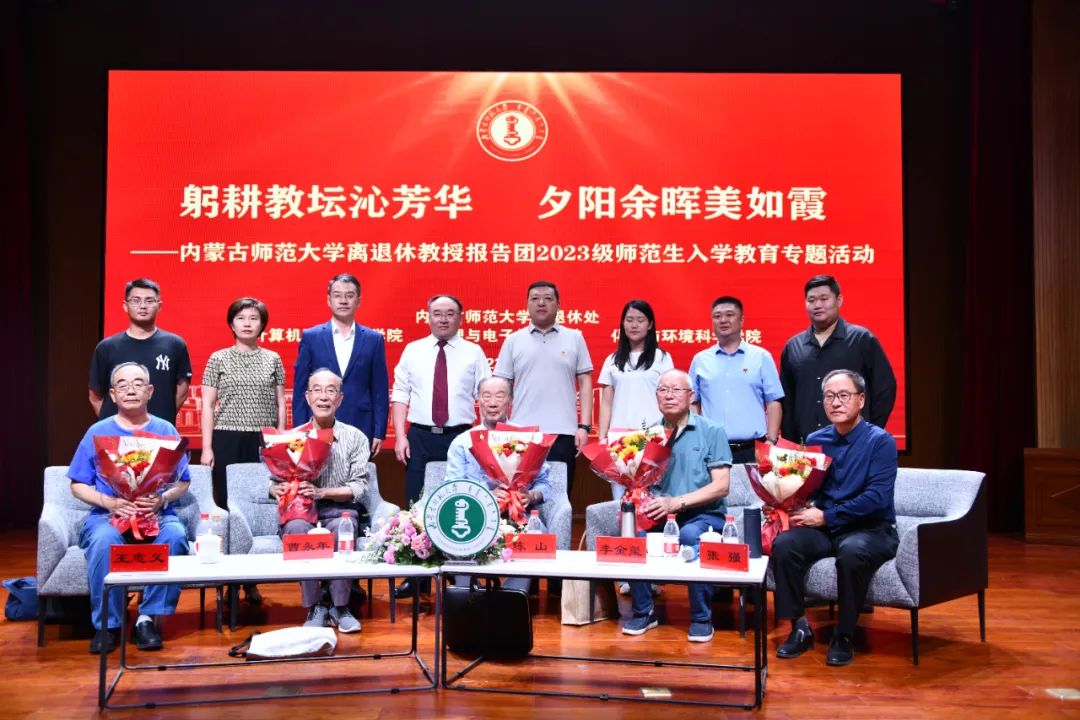 9月20日晚,内蒙古师范大学离退休处主办,计算机科学技术学院、物理与电子信息学院、化学与环境科学学院承办的躬耕教坛沁芳华,夕阳余辉美如霞——内蒙古师范大学离退休教授报告团2023级师范生入学教育专题活动在盛乐校区图书馆二楼报告厅举行。