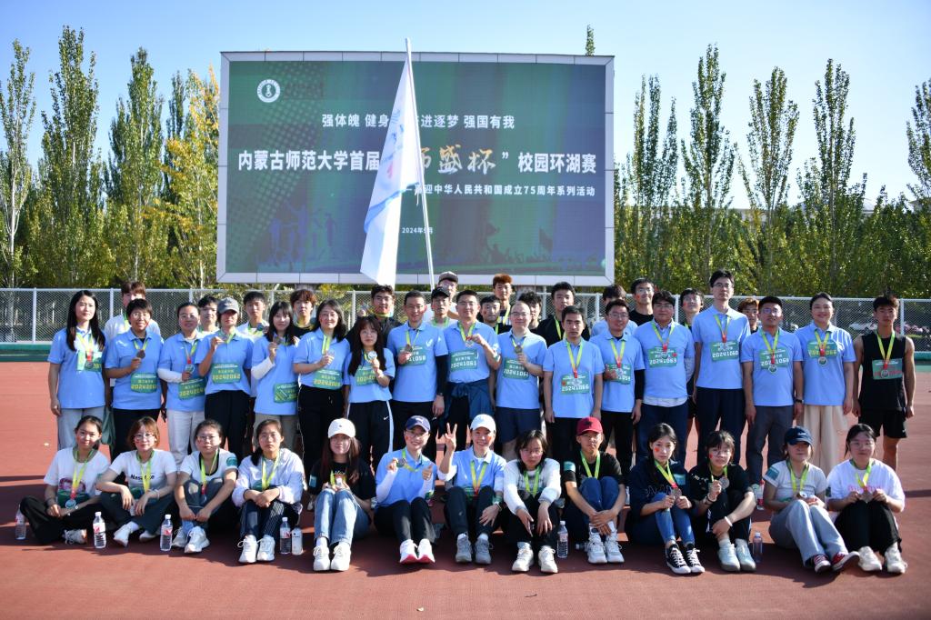 为丰富校园体育文化,号召广大青年学生及教职工积极参与跑步运动,强健体魄,磨练意志,弘扬爱党爱国爱校精神,以斗志昂扬、奋斗不息的青春姿态迎接新中国成立 75 周年,9月26日下午,我院师生共计70余人参加内蒙古师范大学“师盛杯”首届校园环湖赛。
