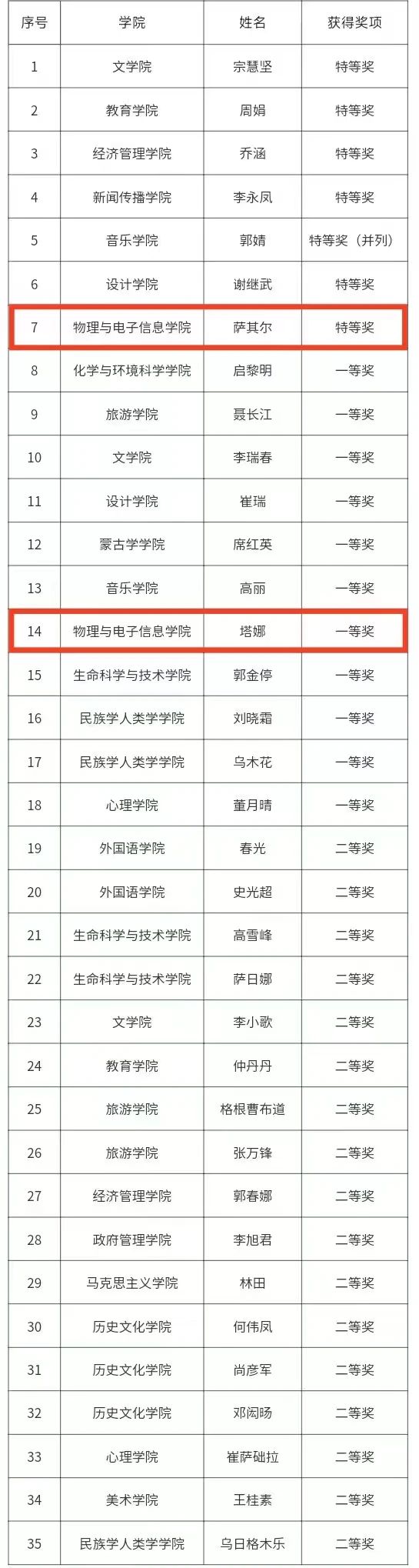 第四届内蒙古师范大学本科课程思政教学大赛个人获奖名单