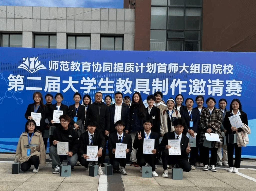 本次比赛旨在加强师范教育协同提质计划首师大组团院校之间的深入交流,着力提升师范生的创新精神和实践能力,推动本科教育教学水平的不断提高。竞赛分为初赛和复赛两个阶段,通过线上提交和现场实物演示的方式进行评比。经过激烈角逐,我院共有5项作品成功晋级决赛,在参赛过程中同学们展现出优异的创新实力和竞赛实力,每一件作品都凝聚了参赛学生的智慧和汗水。最终,由张院生老师指导、乐舒文等制作的“基于新课标理念的自制电磁学组合教具”获得一等奖,由杨帆老师指导、宋硕楠等制作的“星火燎原系列教具”获得一等奖;由杨帆老师指导、成佩轩等制作的“助聋5G机械臂教具”获得三等奖,由张林睿老师指导、朱越辉等制作的“水位报警器”获得三等奖;由张院生老师指导、唐铭浩等制作的“自制电动机—涡旋”获得优秀奖。