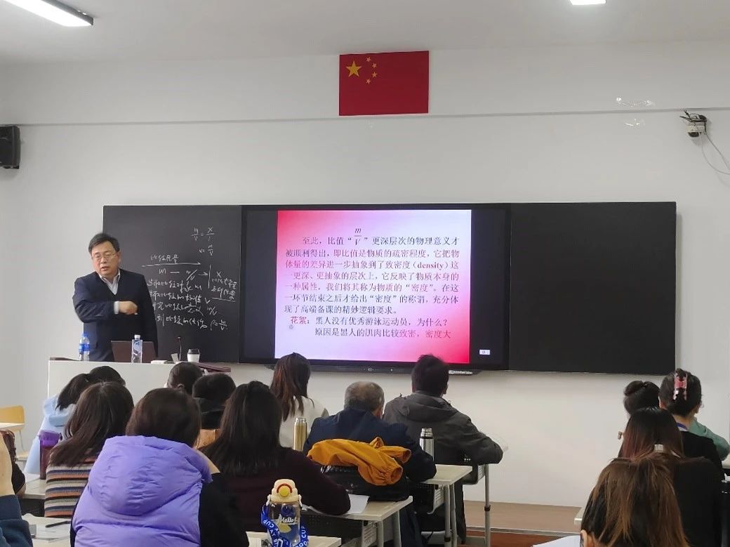 物理与电子信息学院院长曹永军教授,向学员们分享了基于教学实践认识论的初中物理教学评一体化单元教学模式,并以初中物理“浮力”单元为例,深入解析了“课改究竟在改什么?”“落实的难点在哪里?”“我们该怎么办?”三个关键问题。