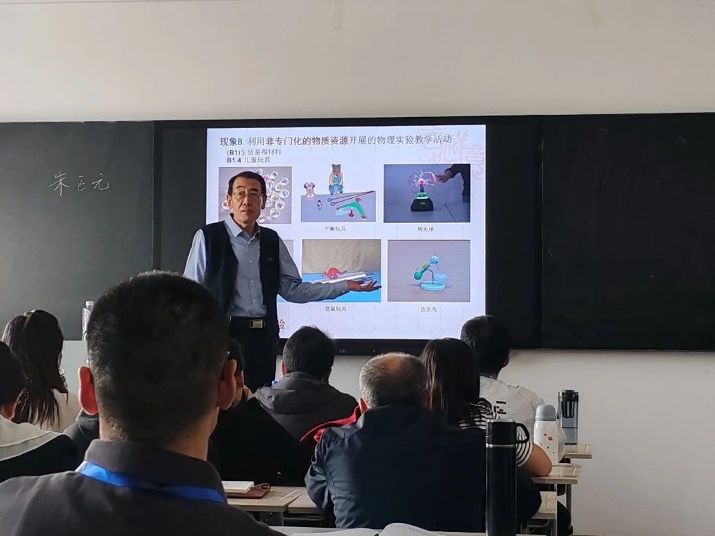 原内蒙古师范大学附属中学校长张伟教授,以“生活中的物理实验课程资源开发与利用”为题,向学员们介绍了利用生活中的材料、物品、器具开展的一类物理实验教学活动——“非常规”物理实验的概念、意义、基础地位以及独特的教育教学功能;从理论和方法层面介绍“非常规”物理实验如何开发设计与实施。
