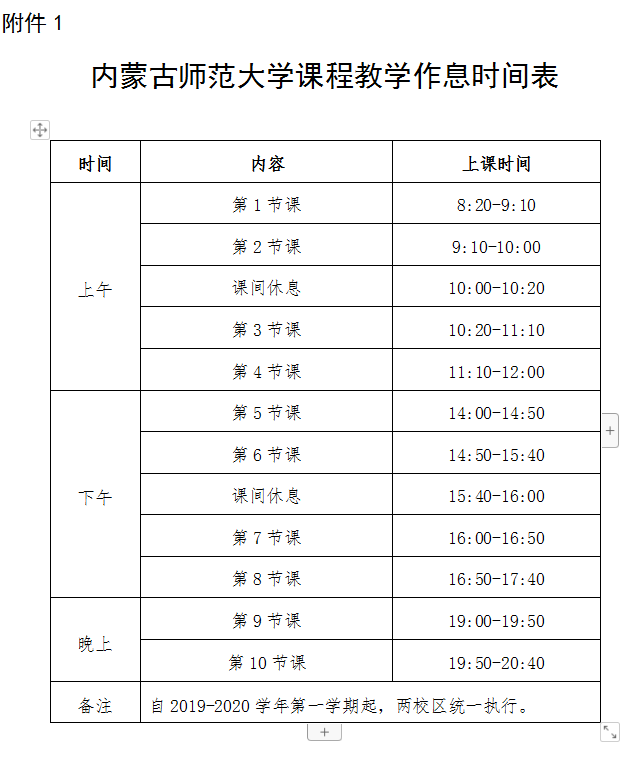 详细课时安排见附件1:内蒙古师范大学作息时间表。