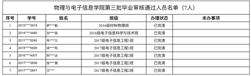 物理与电子信息学院第三批毕业审核通过人员名单(7人)