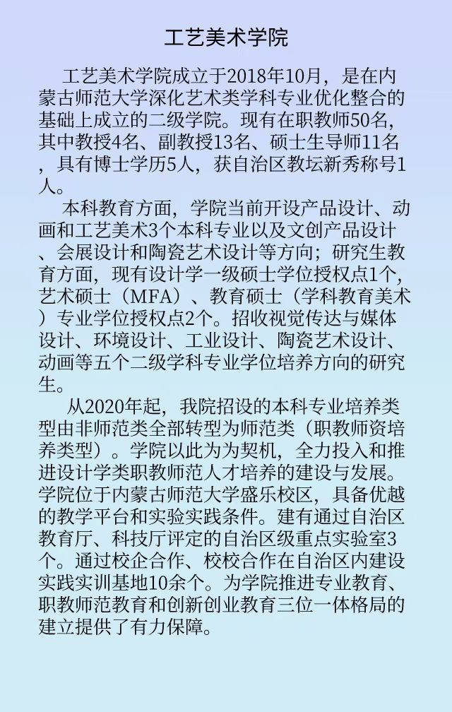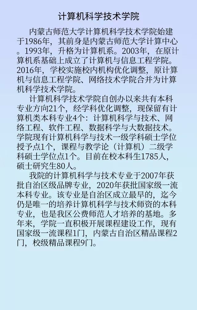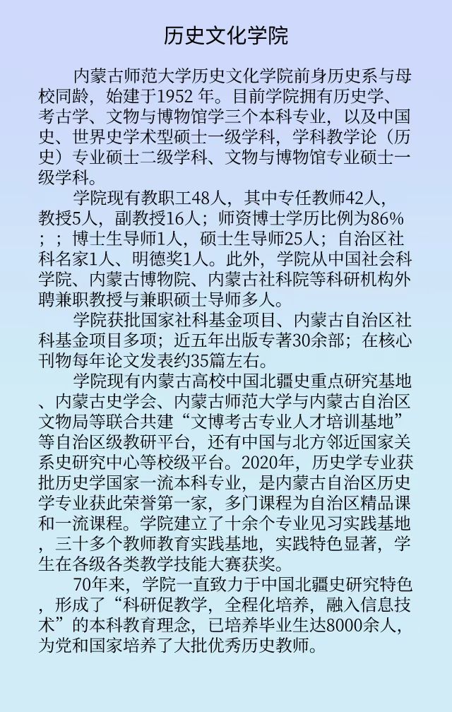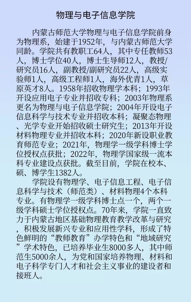 感谢贵单位多年来对内蒙古师范大学物理与电子信息学院、化学与环境科学学院、计算机科学技术学院、地理科学学院、心理学院、历史文化学院、工艺美术学院就业工作的支持以及对毕业生的肯定。