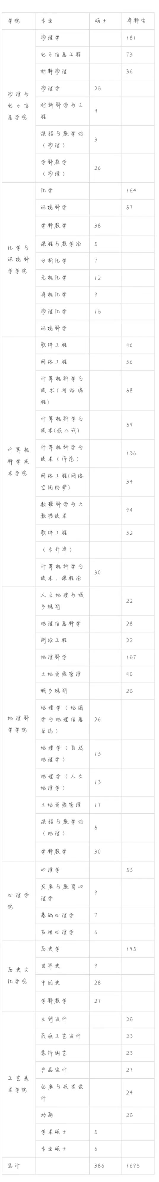 物理与电子信息学院&化学与环境科学学院&计算机科学技术学院&地理科学学院&心理学院&历史文化学院&工艺美术学院