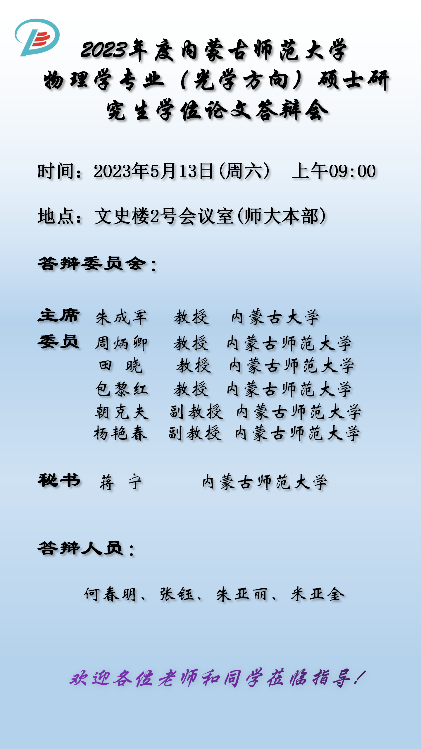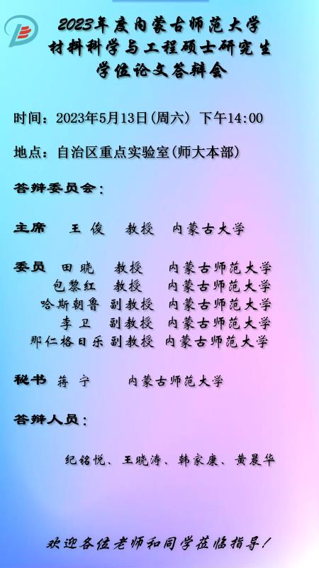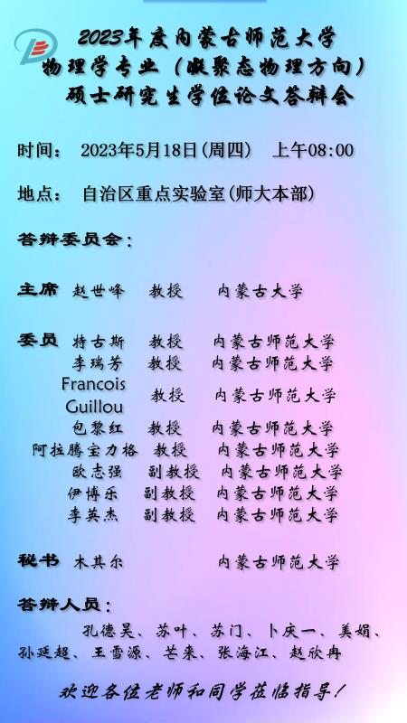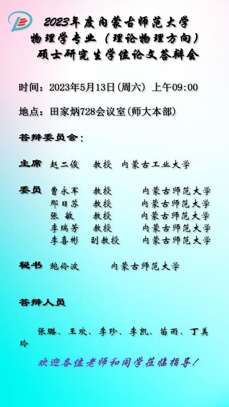 物理与电子信息学院2023届硕士研究生学位论文答辩安排