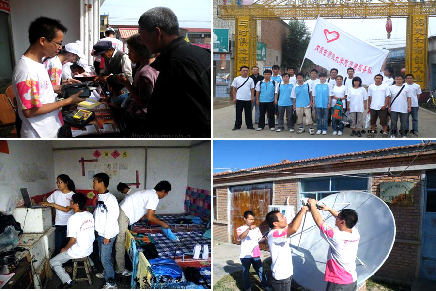 就这样,大一的蓝荣加入学院电子科技协会,从拧螺丝开始自学了电工学、无线电技术、焊接技术,大二时成为学院电子科技协会会长、志愿者服务队队长,大三组织成立了师大校园义务维修服务站,参加自治区“挑战杯”科技作品竞赛并获奖。大学期间无论志愿者服务还是科技协会义务维修,或是“三下乡”社会实践他从不缺席。从盛乐校区到赛罕校区,从和林格尔县敬老院到呼市儿童福利院,从呼市赛罕区桃花乡到集宁马莲渠乡、锡林郭勒盟西乌旗……都留下了他志愿服务的身影。大学期间,他总共参与校内外义务家电维修活动20余场次,参加暑期“三下乡”社会实践3次,获得自治区科技创新奖励2项。他用自己的热情挥洒着青春的汗水,展现着当代大学生激情燃烧的岁月。