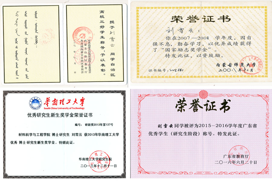 雪云在2006年考入内蒙古师范大学物理与电子信息学院,选择了自己喜欢的物理学师范专业。大学时期的她成绩在班级并不突出,属中等偏上水平,但是通过自身的努力奋斗,在校期间先后获得了国家励志奖学金、校一等奖学金、自治区“三好学生”称号等荣誉。与大多数学生一样,大四时在经历过考研和找工作的抉择后,最终也加入了考研的大军中,抱着既然选择了就要为全力以赴的决心,开始了漫长且孤独的考研复习生活。然而结果并不理想,以一分之差与第一志愿北京理工大学失之交臂,后调剂到浙江师范大学凝聚态物理专业,开展稀土掺杂发光材料的光物理机制研究。