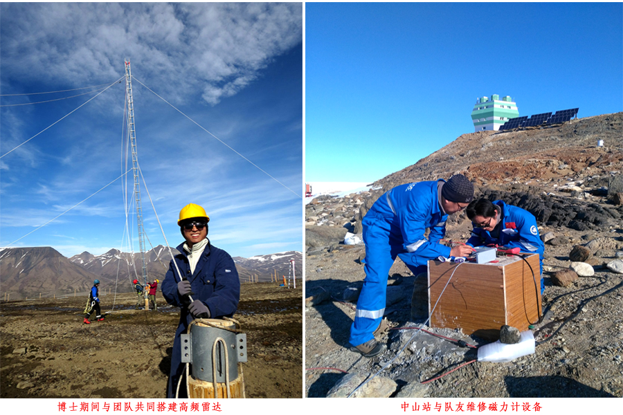 博士毕业后,陈相材于2017年回到中国极地研究中心参加工作。正值我国第34次南极考察,同年他加入南极考察队,前往我国南极中山站进行为期一年的越冬观测。在这期间,他的主要工作是对现场的空间物理观测设备进行维护和常规数据采集。作为我国其中之一的长年考察站,南极中山站自1989年以来便不断完善空间物理观测系统,目前已涵盖极光、电离层、地磁和中层大气等多要素多手段探测设备,为空间天气和空间环境变化提供了多圈层观测条件。2014年,习近平总书记在出访澳大利亚期间曾踏上雪龙船慰问南极科考人员。总书记指出,南极科学考察意义重大,是造福人类的崇高事业。中国开展南极科考为人类和平利用南极做出了贡献。我们要更好地认识南极、保护南极、利用南极。目前,我国极地考察已涵盖六站两船一基地(南极长城站,南极中山站,南极昆仑站,南极泰山站,北极黄河站,中-冰联合北极观测站;雪龙船,雪龙2号船;中国极地考察国内基地),位于南极罗斯海区域的新建站正在建设中。