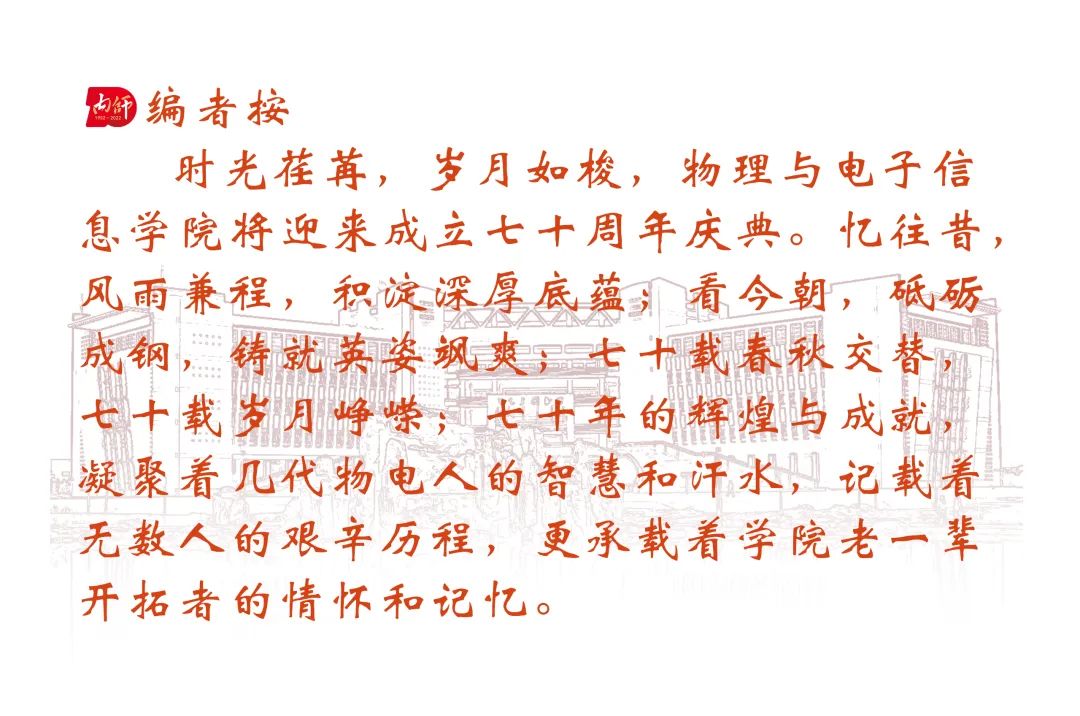物电院之所以有今天的成绩,离不开物理系各位元老以及每位开拓者的努力和贡献,在此展示的只是部分有视频资料的老师。值此校庆70周年之际,祝各位前辈身体健康,快乐生活!感谢所有前辈的辛勤付出和耕耘!