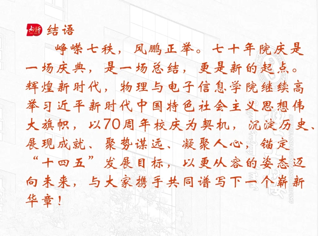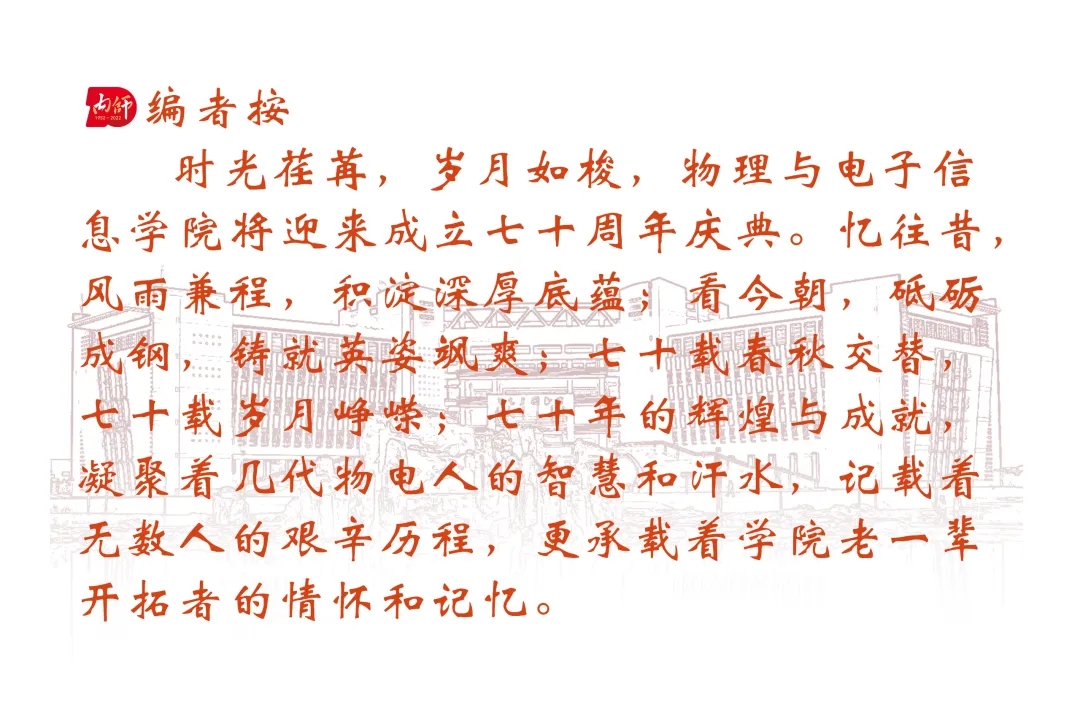物电院之所以有今天的成绩,离不开物理系各位元老以及每位开拓者的努力和贡献,在此展示的只是部分有视频资料的老师。值此校庆70周年之际,祝各位前辈身体健康,快乐生活!感谢所有前辈的辛勤付出和耕耘!