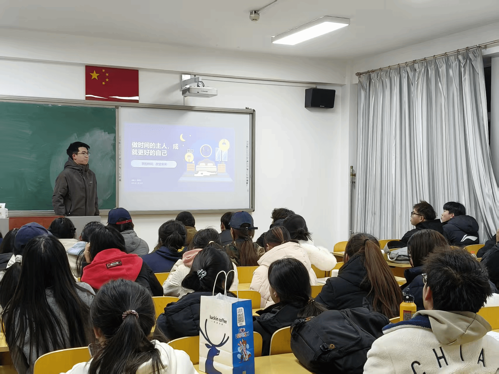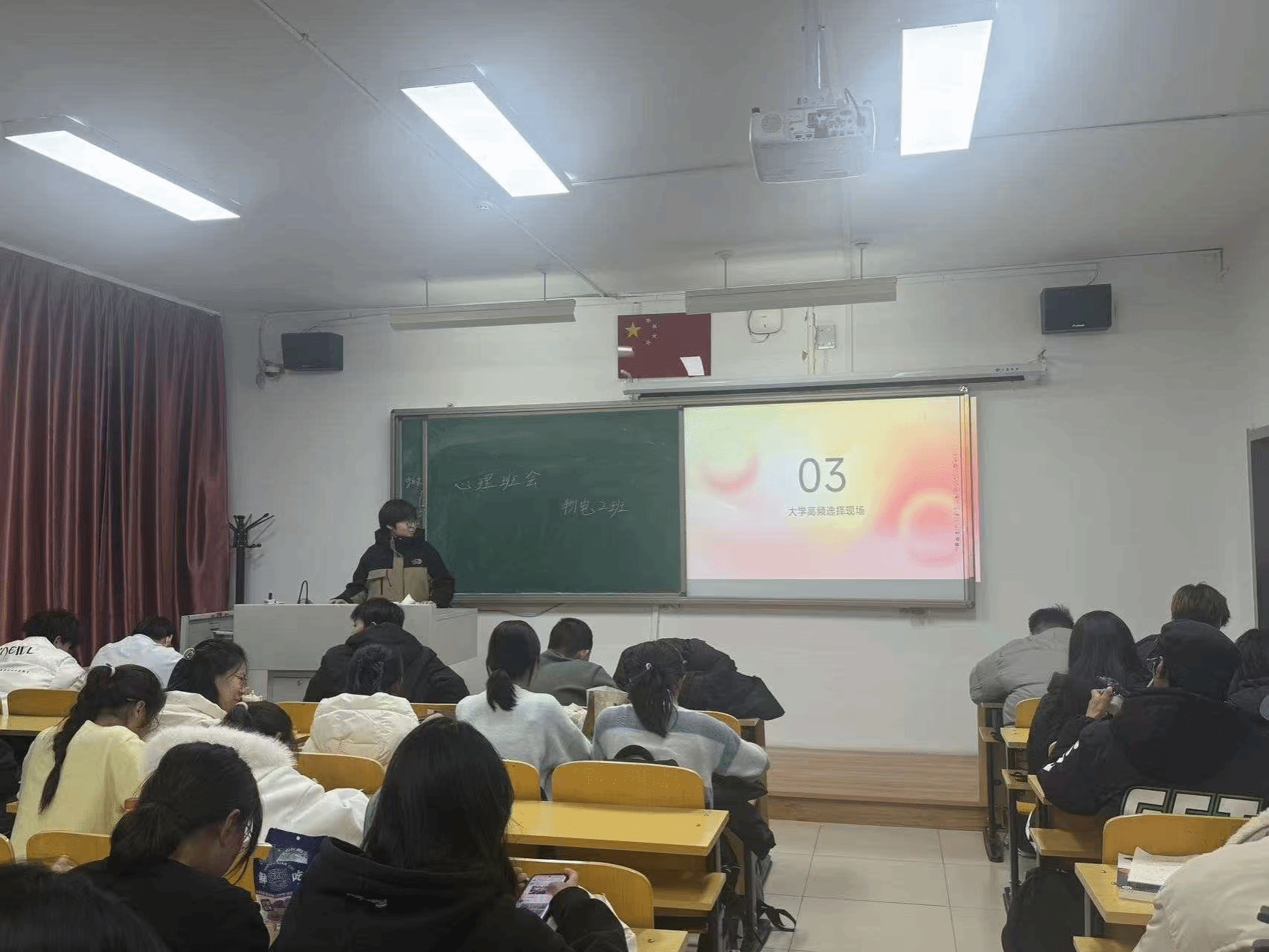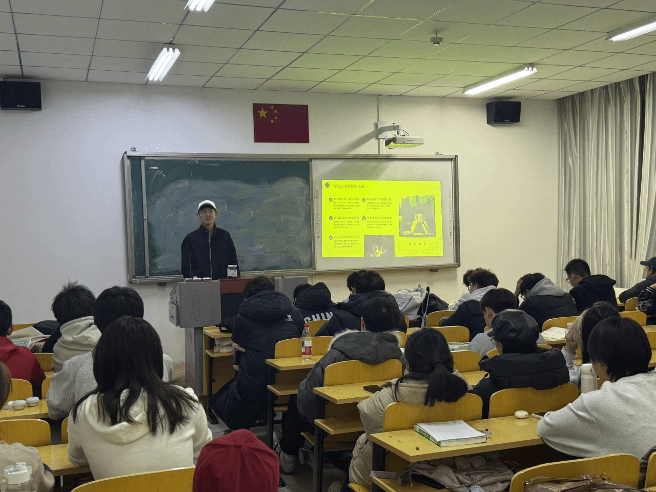 “情绪盲盒” 里,同学们匿名倾诉青春心事,在文字共鸣中消解孤独;“默契大考验” 通过趣味互动解锁同窗情谊密码,拉近彼此距离;“阳光许愿卡” 上,大家写下对未来的期许,用正向愿景点亮成长之路。此外,班会还通过集体分析大学生常见心理问题、现场交流分享等形式,深入探讨心理问题解决方案与人生价值导向,帮助同学们纠正对心理健康的偏颇认识,树立科学的心理健康观。
