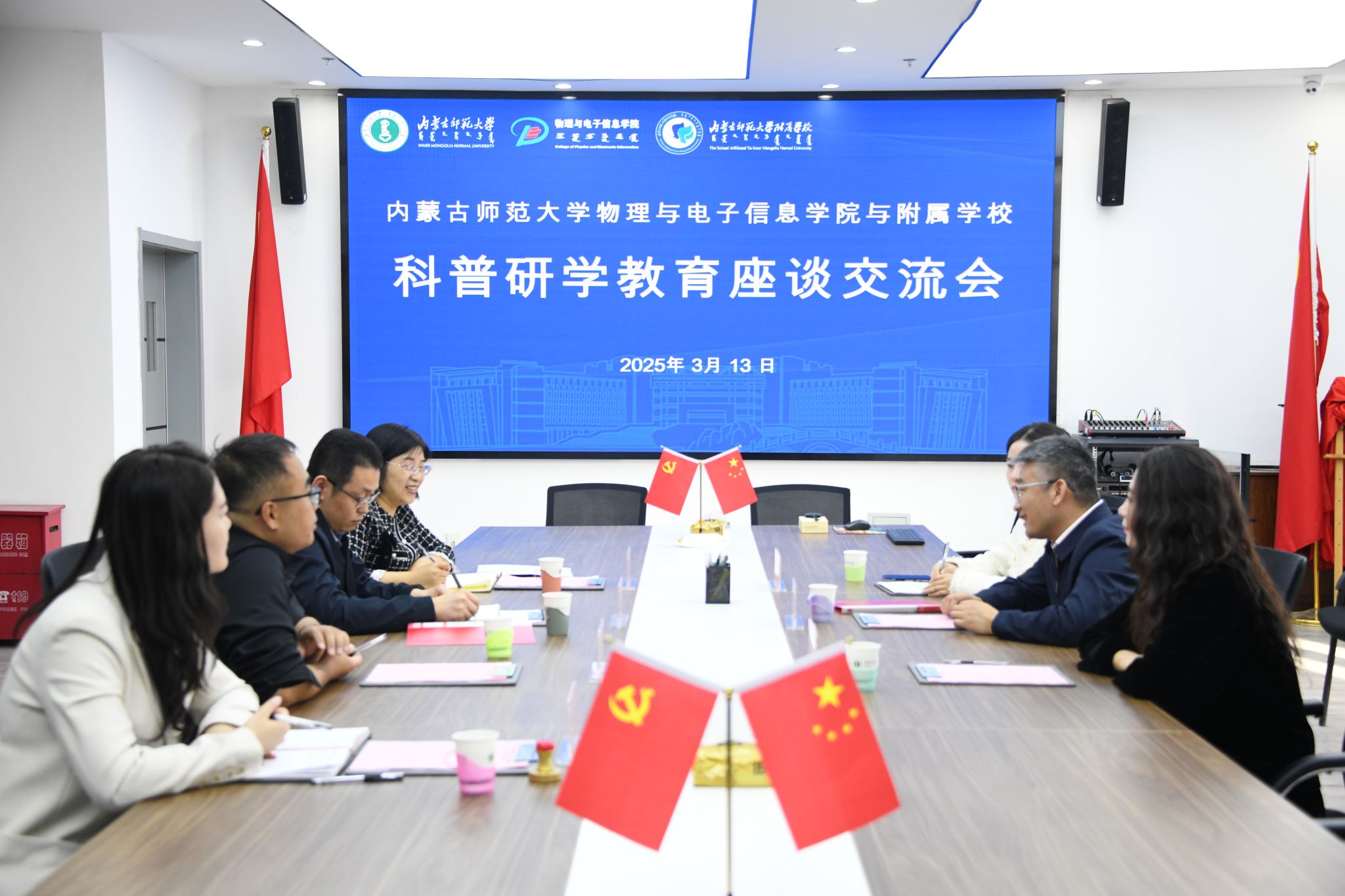 为促进我院与中学之间的合作与交流,推动科普研学教育的发展,3月13日,我院在理工楼A座701会议室与附属学校开展科普研学教育座谈交流会。附属学校副校长李晓波、党政办于淼、团委鲍雪倩、物理与电子信息学院党委副书记、副院长欧志强、物理系主任孙咏萍、实践与创新工作室负责人杨帆出席会议,会议由团总支书记宝力尔主持。