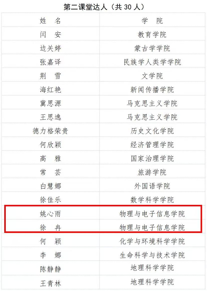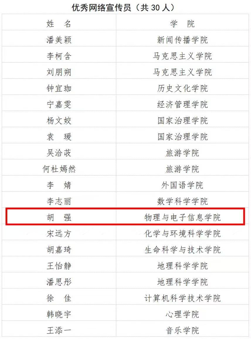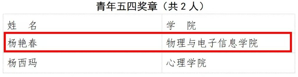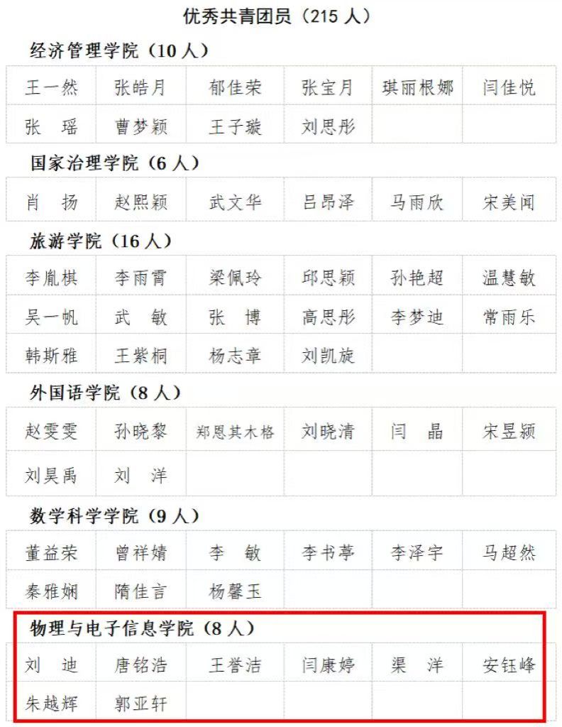 青年五四表彰入围个人
