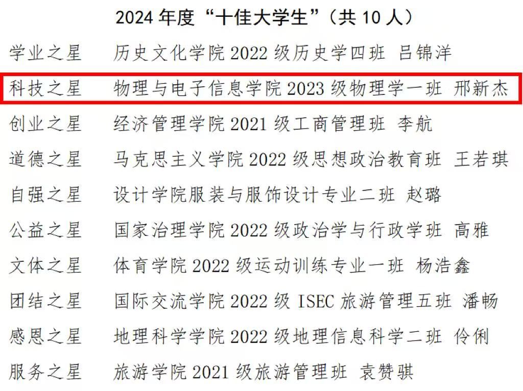 2024年度“十佳大学生”