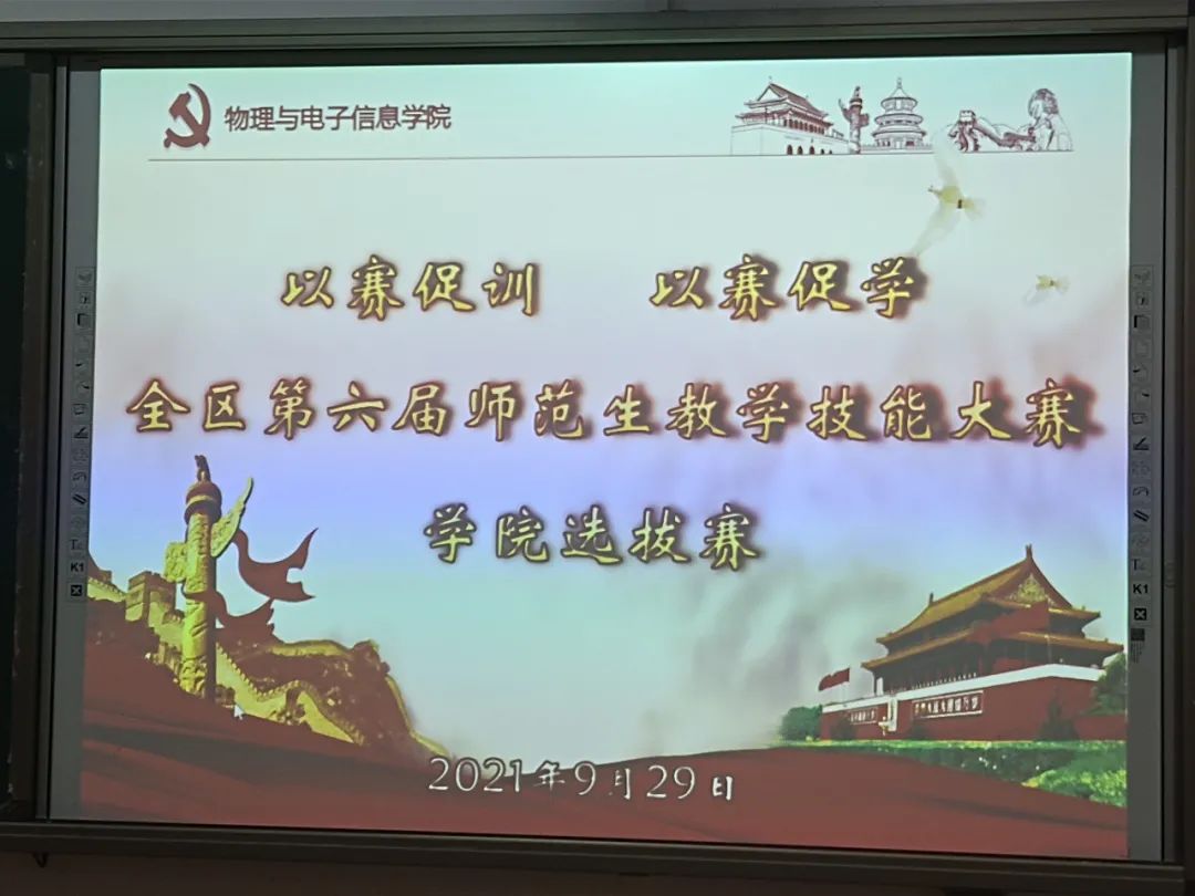 进一步增强我院师范生对基本教师技能的掌握和创新,彰显师范生的特色,强化学生教学技能,同时为全区第六届师范生教学技能竞赛选拔优秀选手,9月29日下午,我院举办了师范生教学技能大赛选拔赛。