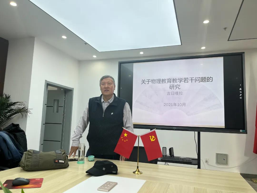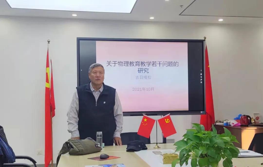 为提升教师教育团队业务水平,推进本硕一体化人才培养模式的应用与实践,10月21日下午4:00在理工楼会议室A701,物理与电子信息学院教师教育团队特举办大型教研活动——邀请吉日嘎拉教授作《关于物理教育教学若干问题的研究》的讲座,讲座由学院副院长那日苏主持,全体教职工参加。