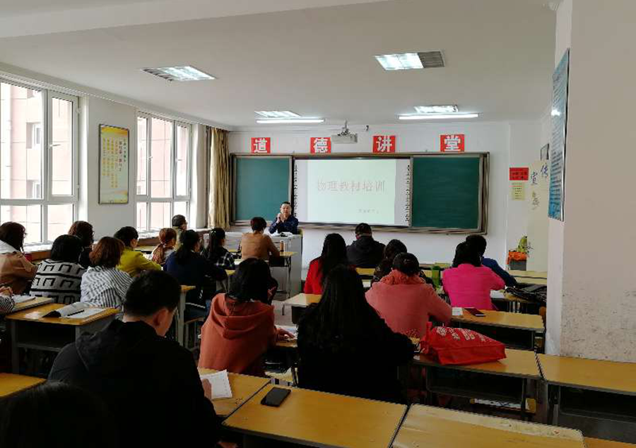本网讯 2018年3月20日,物理与电子信息学院2017级学科教学(物理)研究生到我校联合培养基地——呼和浩特实验中学参加物理教师教材培训学习。 在本次培训中,郭文老师将自己在教学中积累和总结的经验面对面的传授给同学们,将教材中的每一个知识都讲解的十分透彻到位。同学们在本次学习中收获颇丰,尤其是对今后实践教学中对教学重难点的把握有很大的指导作用。
