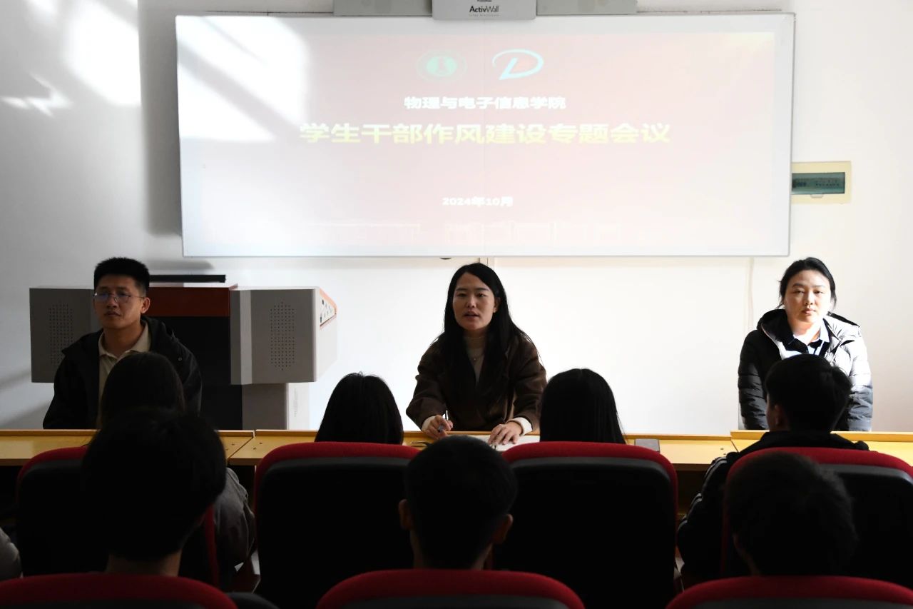 为进一步加强学生干部作风建设,培养一批政治素质强、理论水平高、服务意识好、工作作风实、学习成绩优异的学生干部,10月31日,我院召开学生干部作风建设专题会议,学就办主任王乐、团总支书记宝力尔、辅导员冀锦涛出席会议,本硕学生干部共计80余人参加,会议由团总支书记宝力尔老师主持。