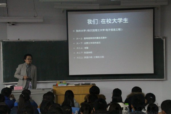 讲座开始,阿老师首先就他个人的经验进行了介绍,罗列了他一系列的计划,并分析了当代大学生所面临的一些问题进行讲解。接下来,阿老师重点讲解了科技发展的方向,并且鼓励同学们热爱科学,钻研科学。在活动的最后,同学们提出自己的困惑,阿老师也认真的给同学们进行分析和建议。