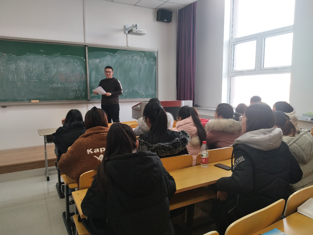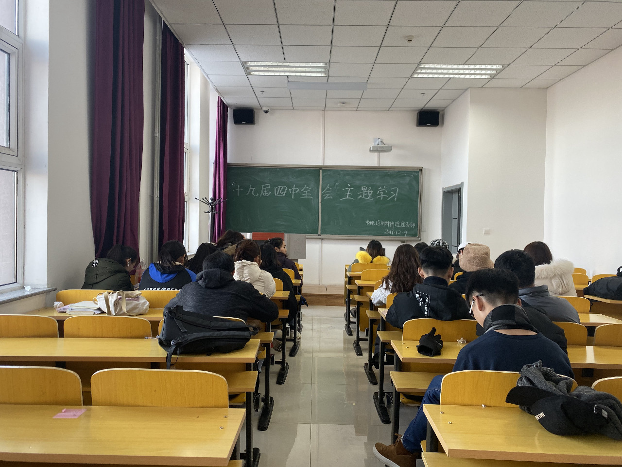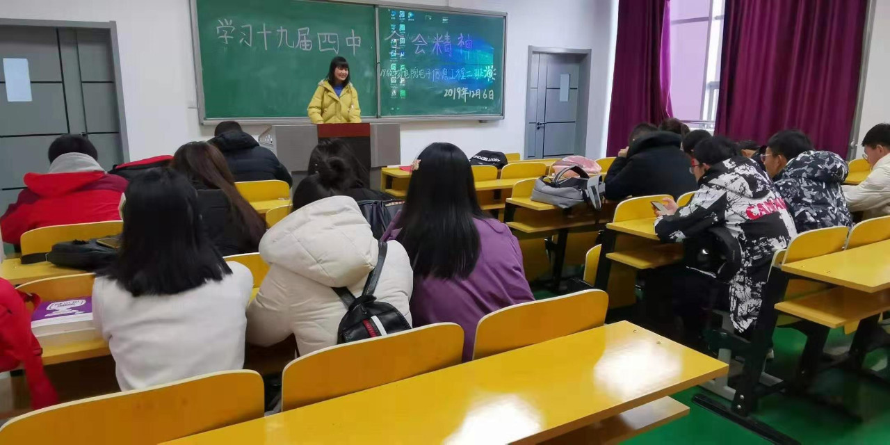 活动中,各团支部充分结合十九届四中全会教育内容,通过主题班会、座谈交流会、研讨会等形式把全会精神迅速传达到广大群体学生中去。