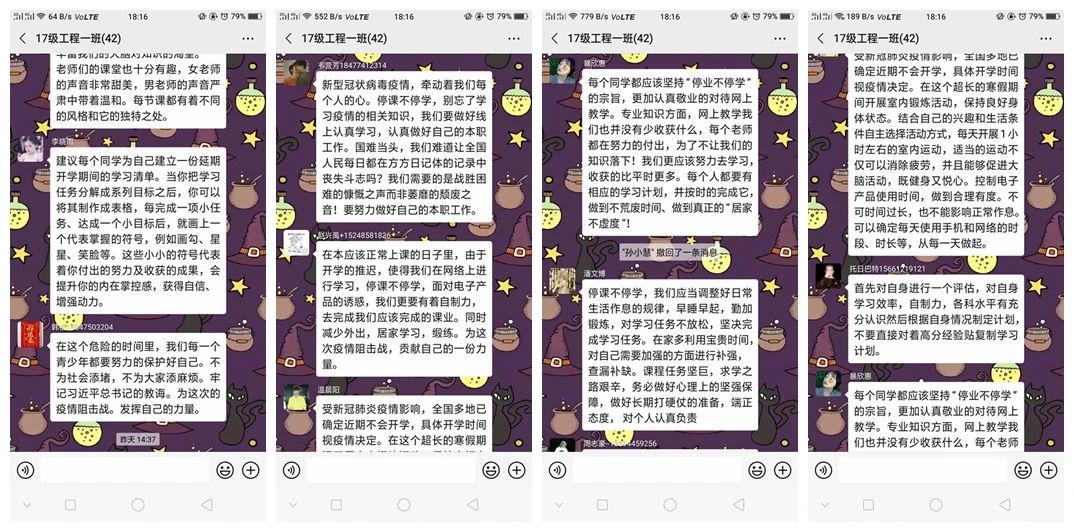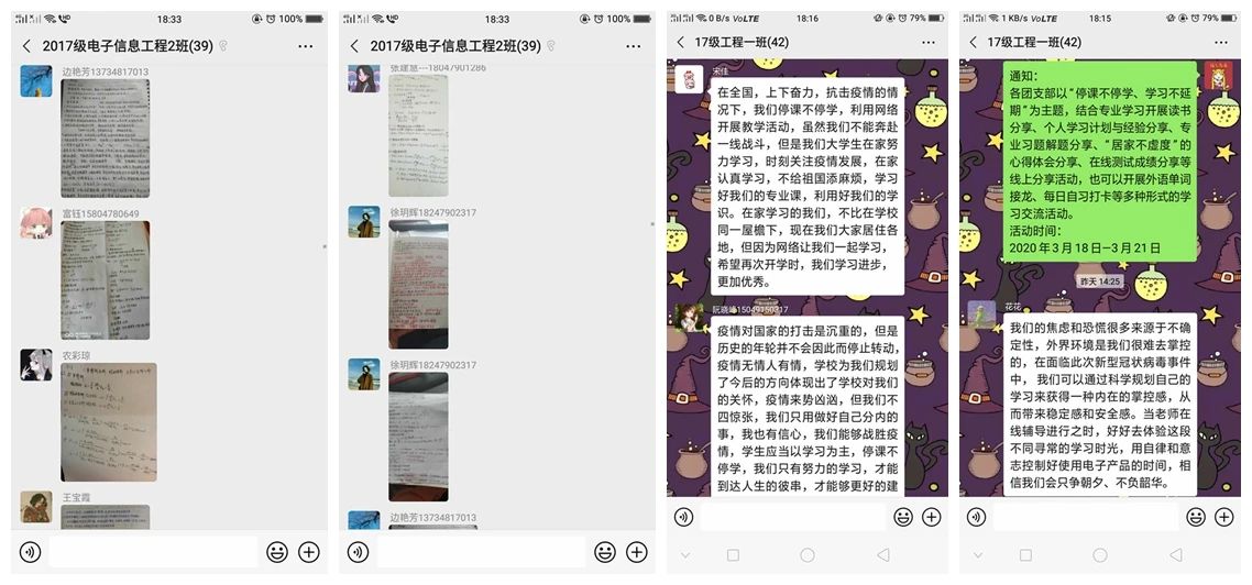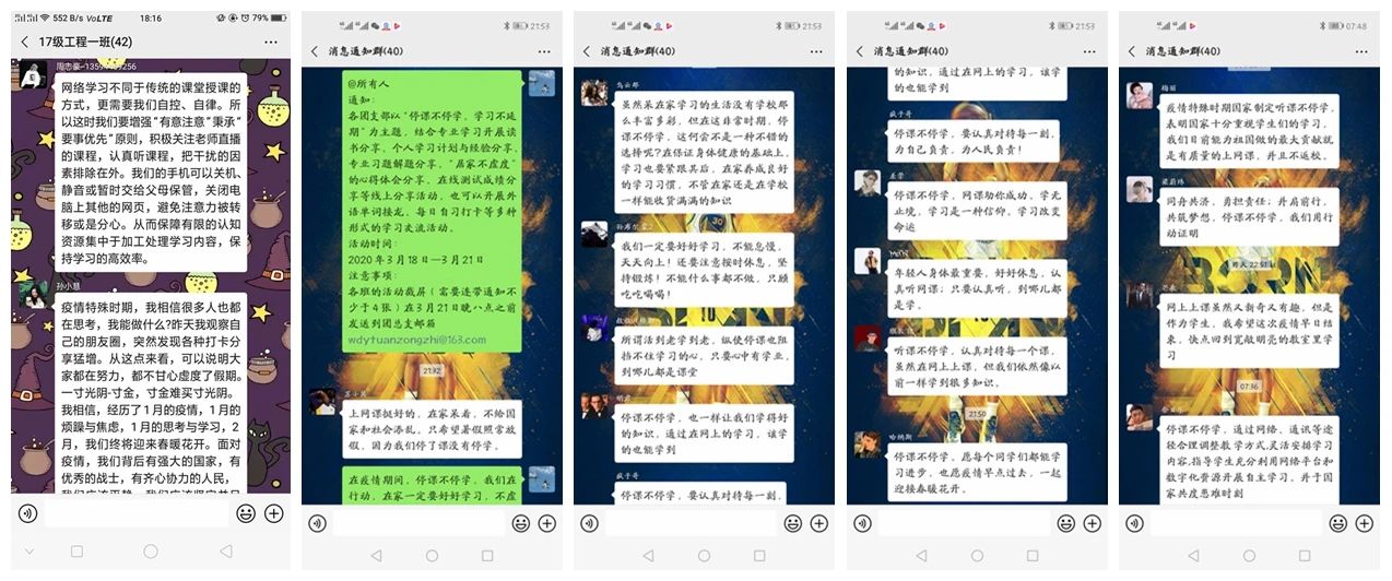 疫情期间,我院内已按计划逐步展开网络教学,利用网络平台为学生提供丰富的学习资源。为进一步激励学生把握好时间,合理有效安排学习计划,各团支部以“停课不停学、学习不延期”为主题,召开线上团日活动,形式多样,得到学生及老师们的热烈响应。