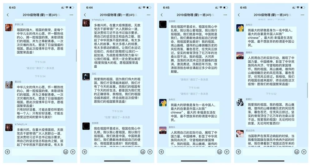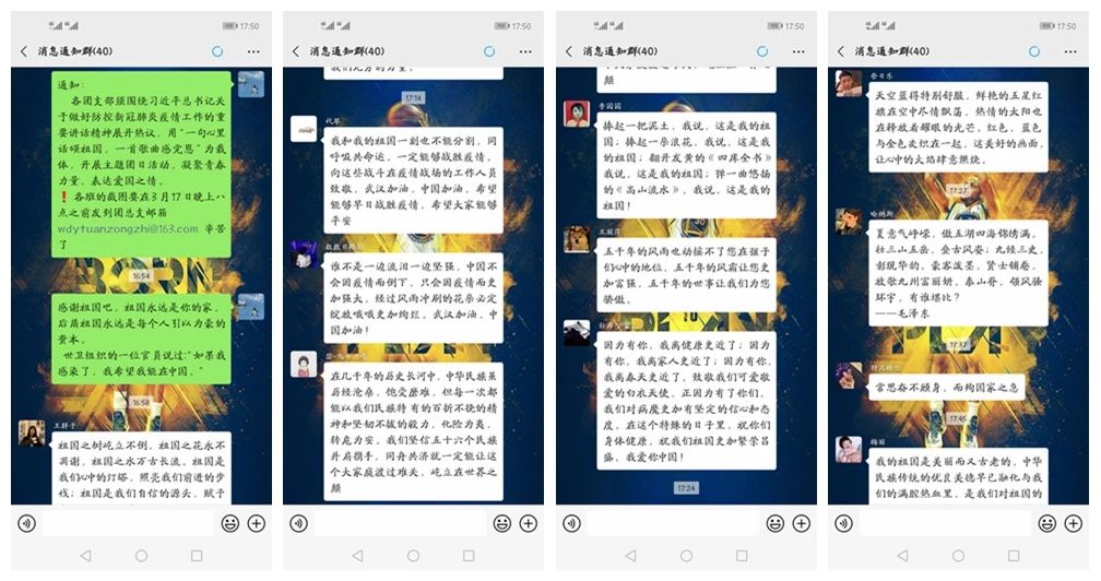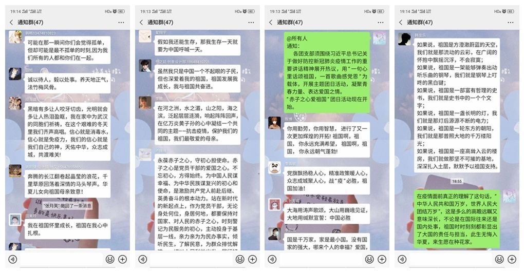 疫情当前,全国人民应当齐心,聚集时代力量。在所有人的努力下,疫情得到稳步改善,面对疫情期间的人与事,习近平总书记发表关于防控新冠肺炎疫情工作的重要讲话精神。为进一步响应国家号召,深刻贯彻青年在疫情防控中的作用与贡献,我院各团支部召开“一句心里话颂祖国,一首歌曲感党恩”主题团日活动,凝聚青春力量,表达爱国之情。