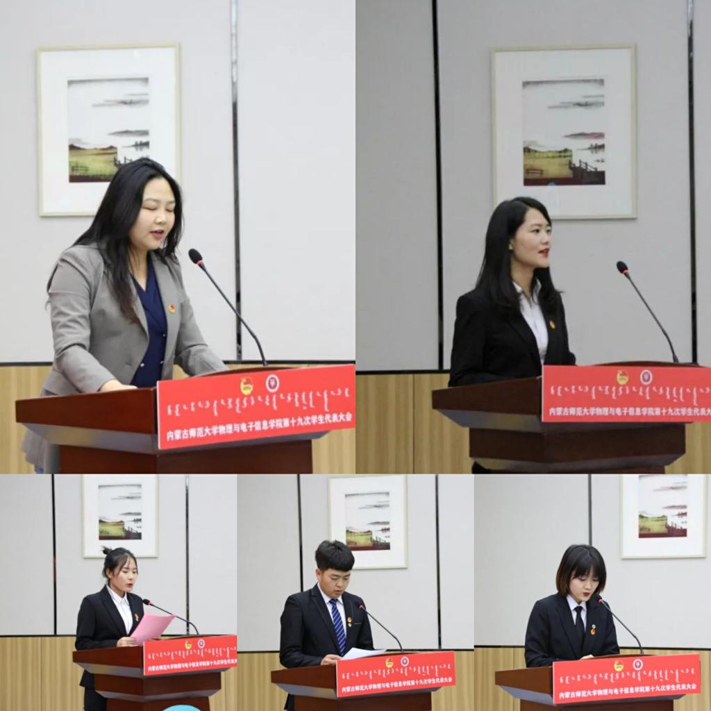 大会闭幕式于16:00在盛乐校区学生事务中心多功能报告厅召开,学院团总支负责人宝力尔主持。会议通过了《内蒙古师范大学物理与电子信息学院第十八届学生委员会工作报告》的决议(草案)、《内蒙古师范大学物理与电子信息学院学生会章程(修正案)》的决议(草案)、《内蒙古师范大学物理与电子信息学院学生会组织改革实施方案》的决议(草案);宣布了内蒙古师范大学物理与电子信息学院第十九届学生委员会委员选举结果。