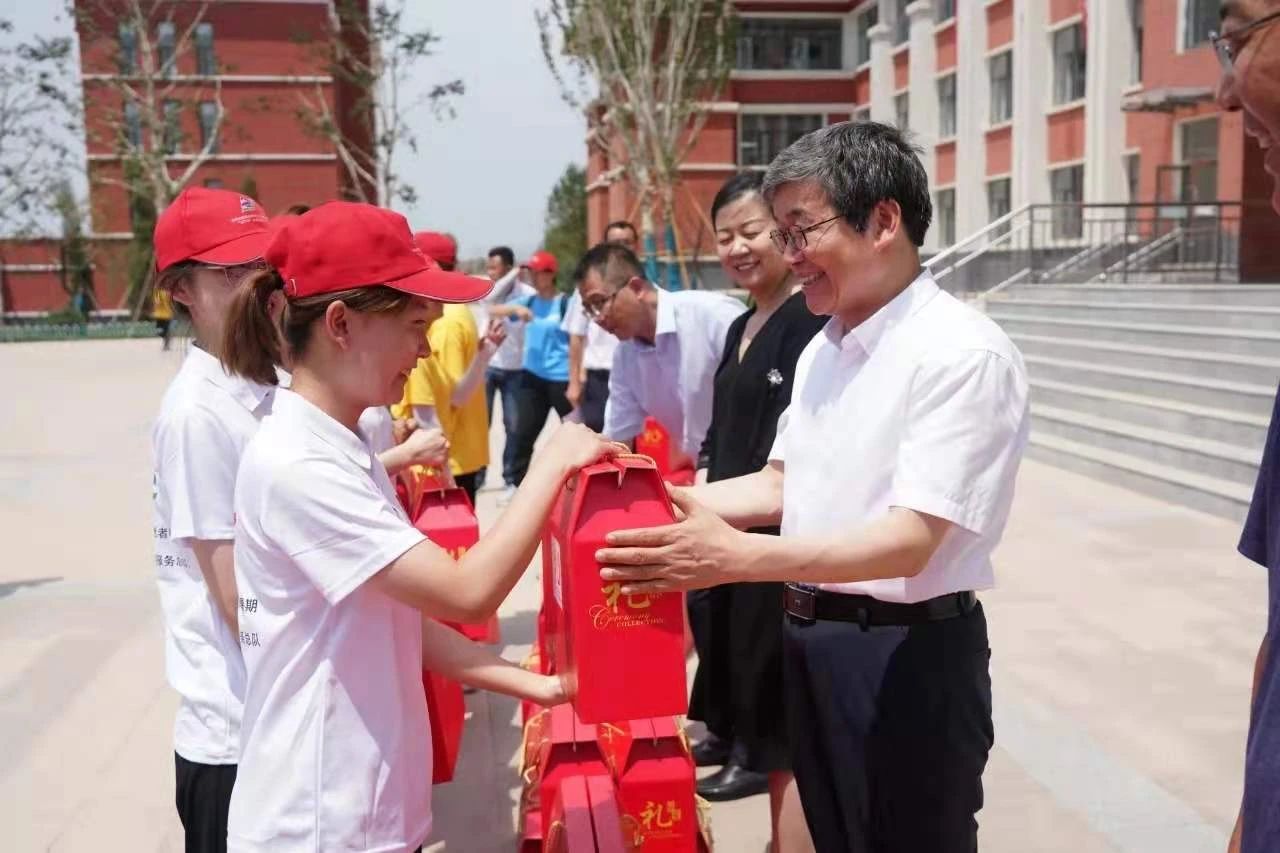 7月15日上午,内蒙古师范大学党委书记、校长阿拉坦仓,党委副书记高云峰,党委委员、副校长宫箭等校领导,物理与电子信息学院副院长曹永军一行,来到包头市石拐区苏蒙实验学校慰问了我院“北疆科技支农”“三下乡”公益服务队志愿者,并为同学们送去慰问品。