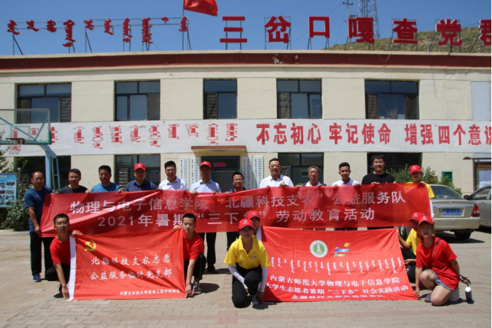 7月14日,内蒙古师范大学物理与电子信息学院物理学专业、电子信息工程专业学生联合农大机电学院农业机械化与自动化、农业电气化专业学生在包头市石拐区吉忽伦图苏木免费为农民维修农机、家电,为农民讲解安全用电知识,现场修好农机4台,家用电器13件,获得了农民们的一致好评。并在该苏木建立了内蒙古师范大学“北疆科技苑”社会实践基地。
