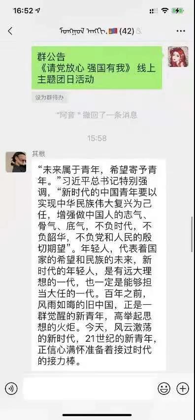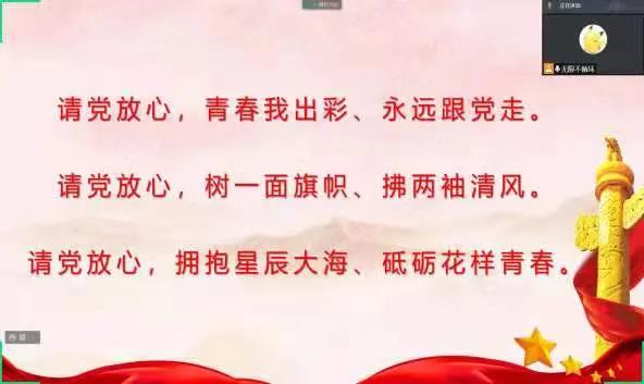 为认真学习贯彻习近平总书记在庆祝中国共产党成立100周年大会上的重要讲话精神,深刻理解习近平总书记对青年的殷切希望和深情寄语,我院团总支积极响应校团委号召,开展“请党放心,强国有我”主题团日活动。