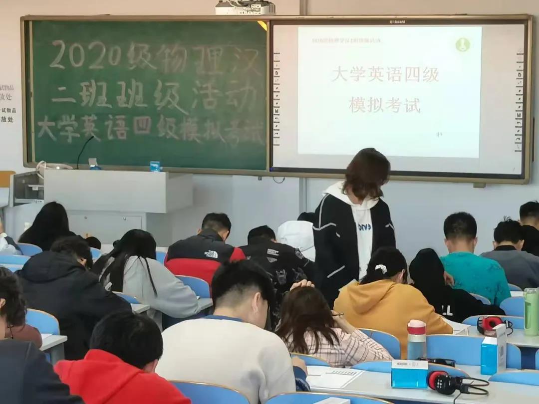 本次四级模拟考试的题型严格按照全国大学英语四级的大纲标准。考试过程中,同学们认真审题,严谨作答,20级物理汉二班班主任付佳琦老师全程巡考,认真履责。