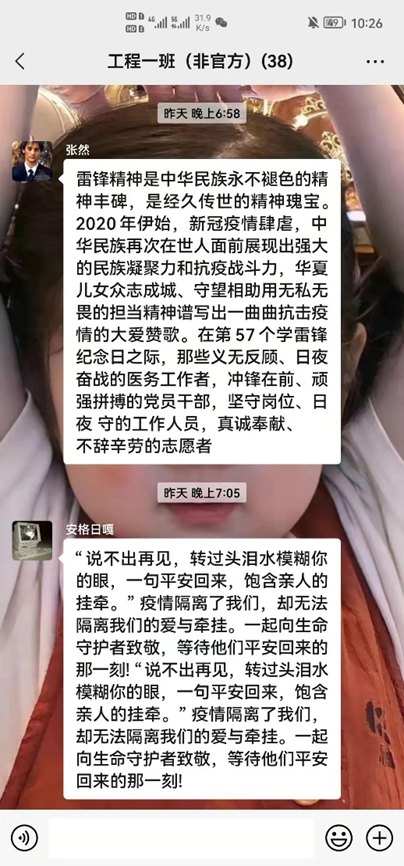 为大力弘扬雷锋精神,在学雷锋纪念日到来之际,我院28个团支部,以线上形式开展了“身边的雷锋”故事讲述活动,大力弘扬雷锋精神,培养学生良好的行为习惯和道德情操,全面推进素质教育,促进学生健康成长,努力构建文明、和谐、向上的校园环境。
